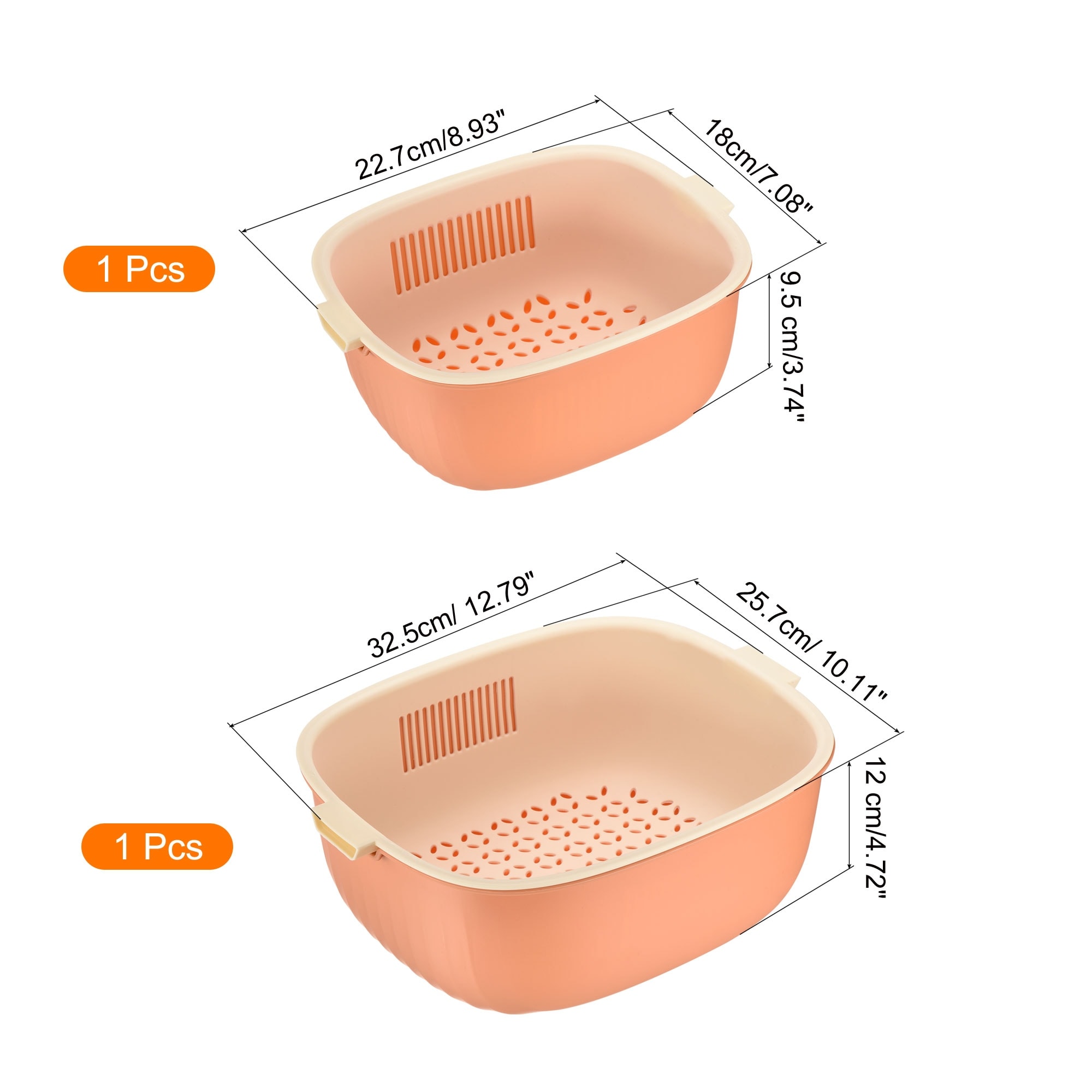 Kitchen Strainer Colander Bowl, Plastic Double Layered Drain Basket - Pink - 32.5 x 25.7 x 12 cm