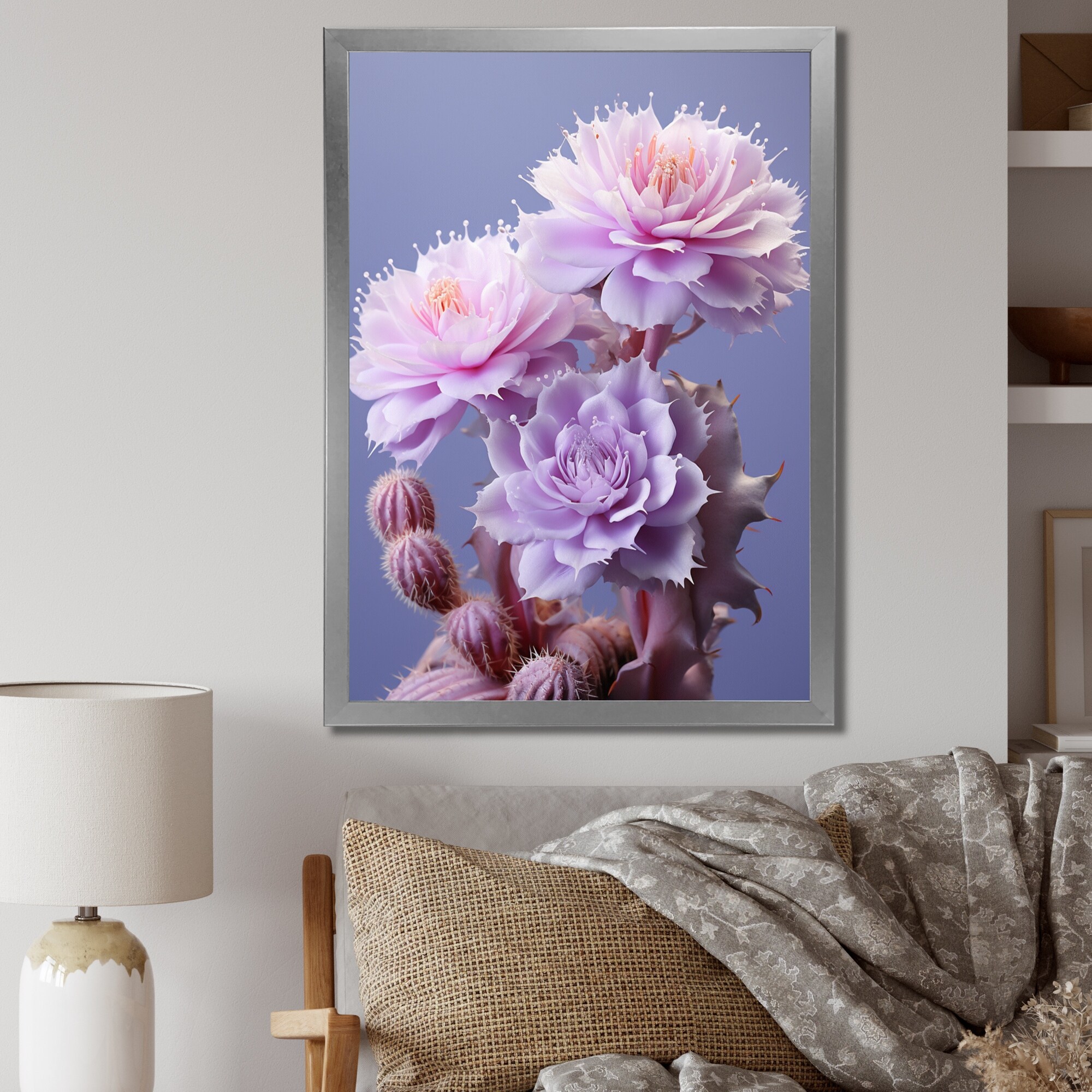 Designart "Pink Cactus Delicate Intricacies Fishhook II" Cactus Framed Wall Decor