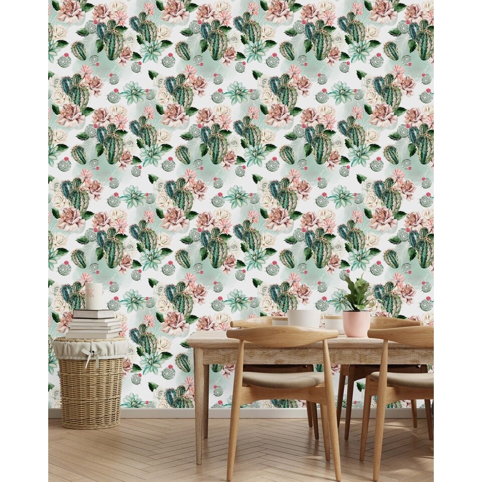 Roses with Cactus Wallpaper Peel and Stick and Prepasted