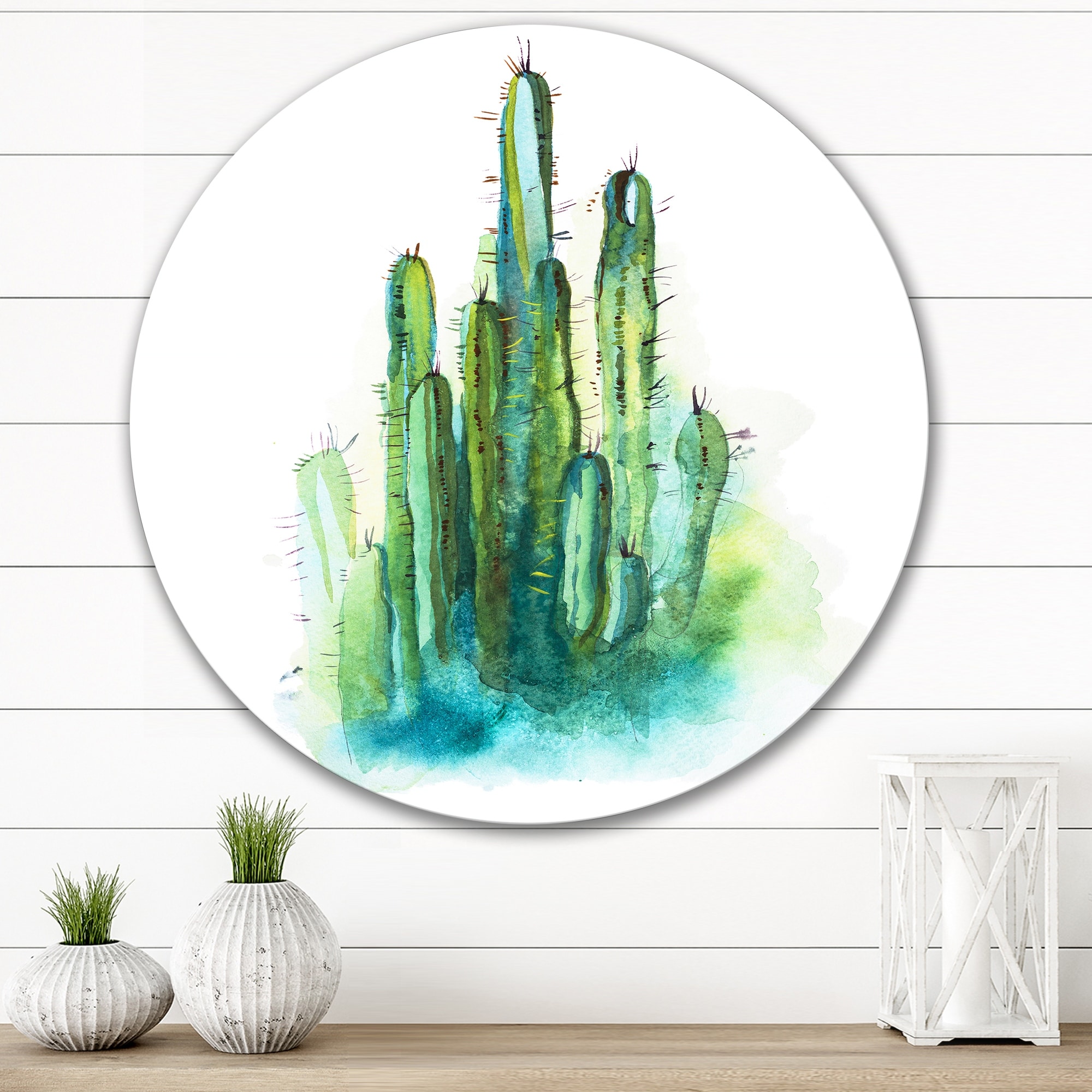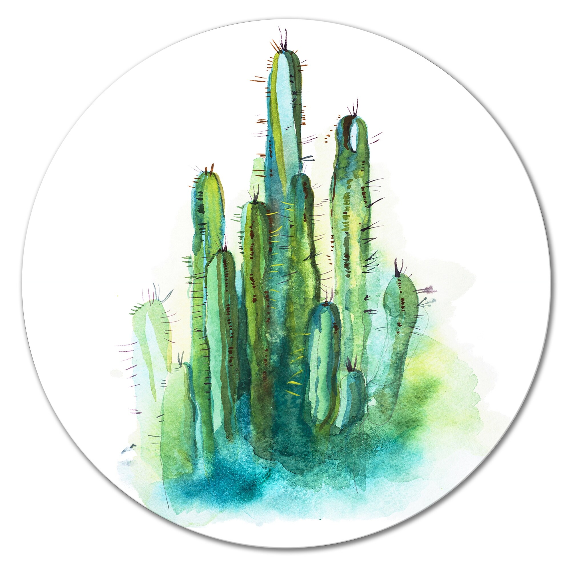 Designart 'Green High Spiky Cactus' Traditional Metal Circle Wall Art
