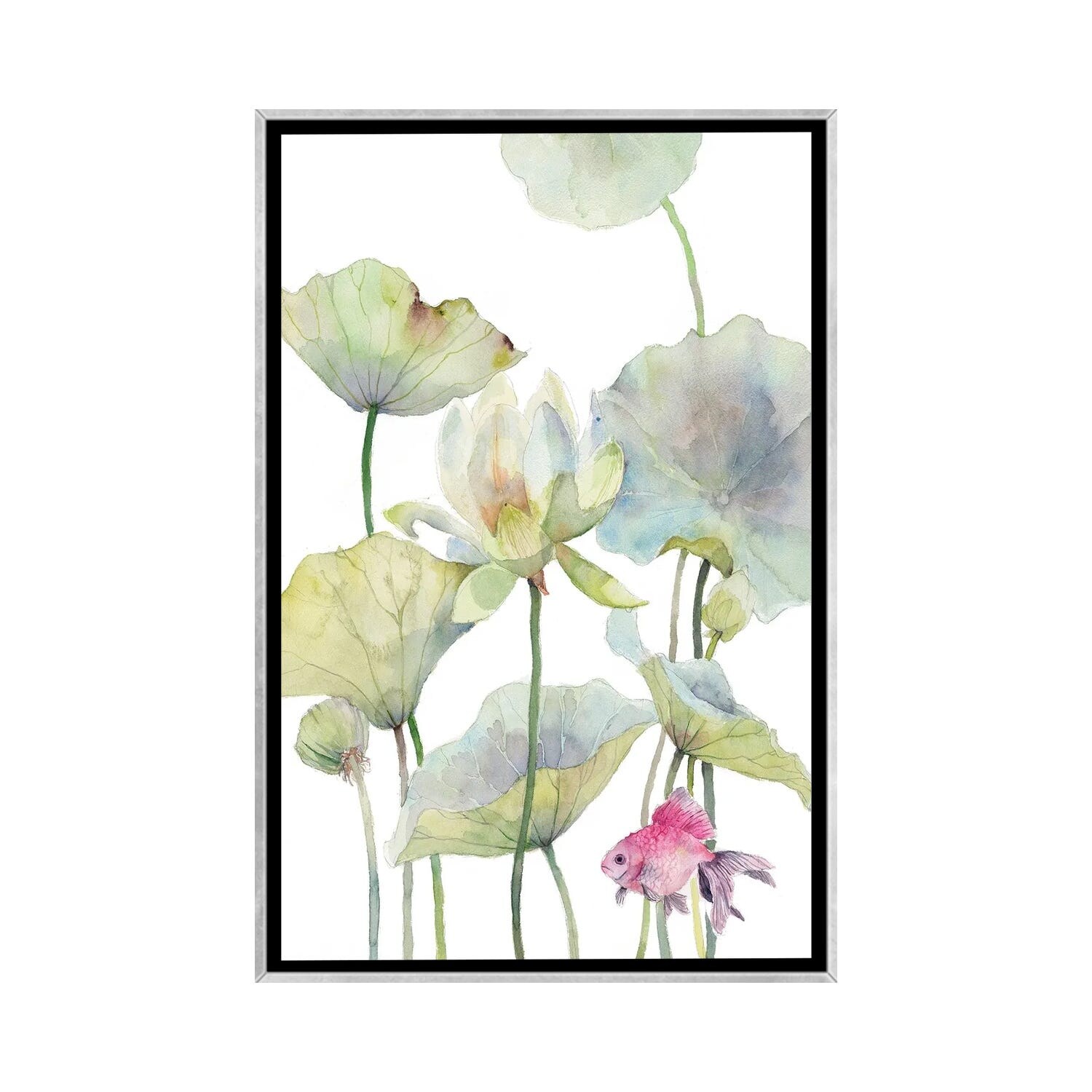 iCanvas "Lotus And Pink Goldfish" by Violetta Boyadzhieva Framed