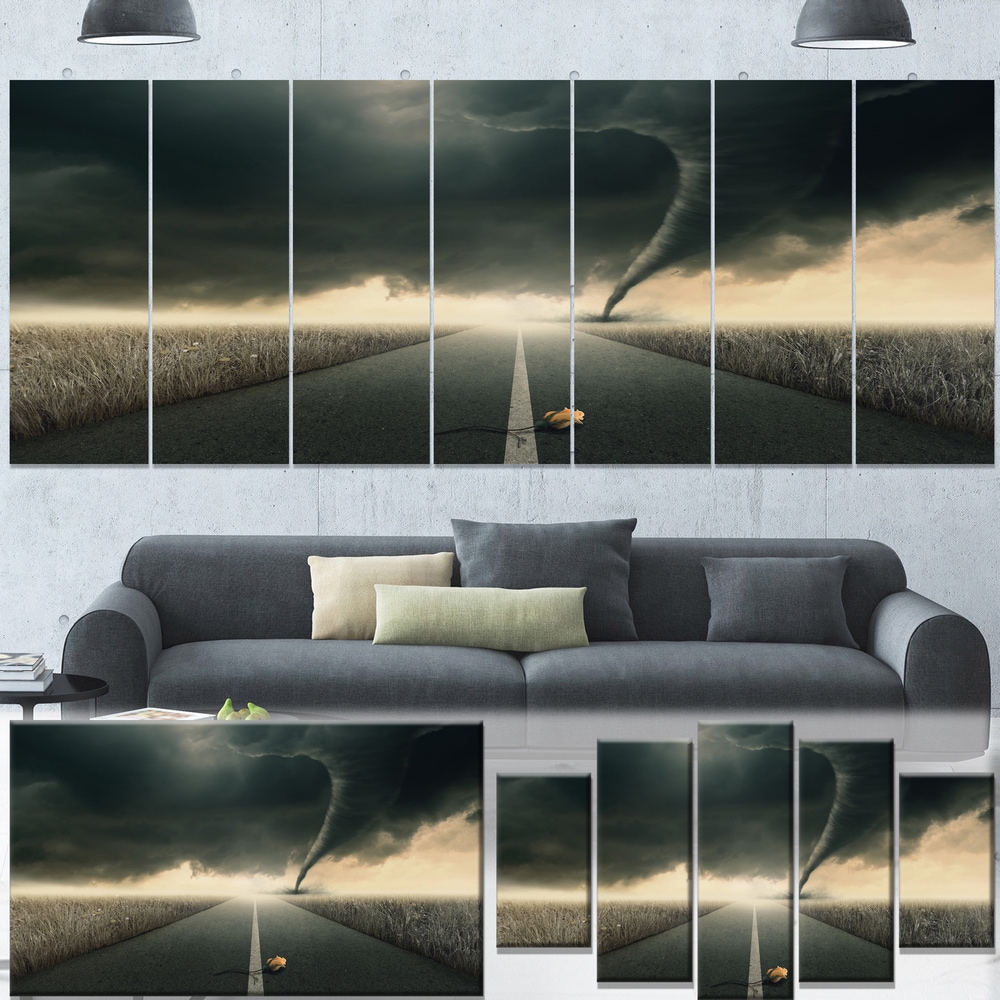 Designart "Yellow Rose on the Dark Road" Landscape Wall Artwork Print on Canvas - Yellow