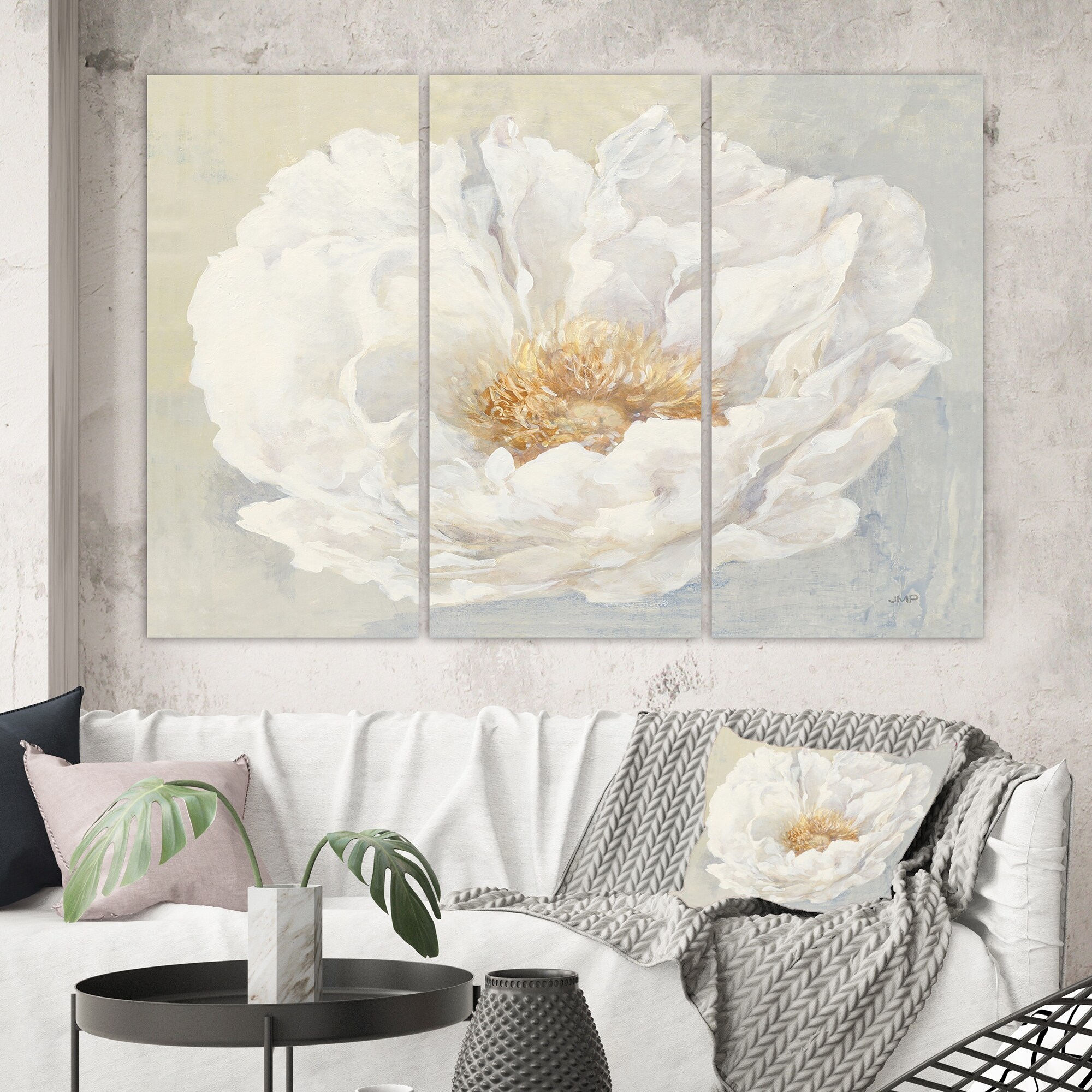 Designart "White Serene Peony" Cottage Canvas Artwork Print
