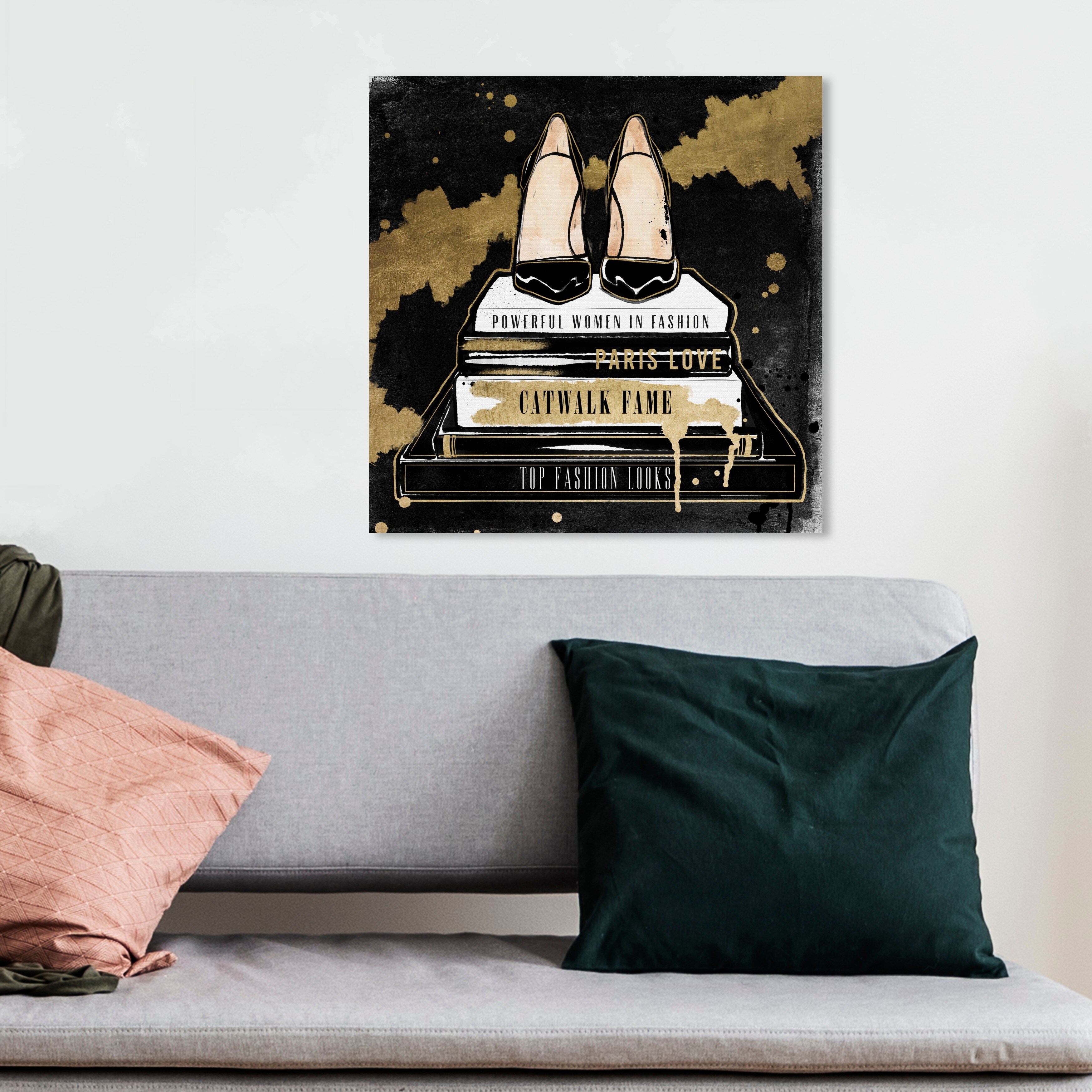 Wynwood Studio 'Golden Books' Fashion and Glam Wall Art Canvas Print Shoes - Black, Gold