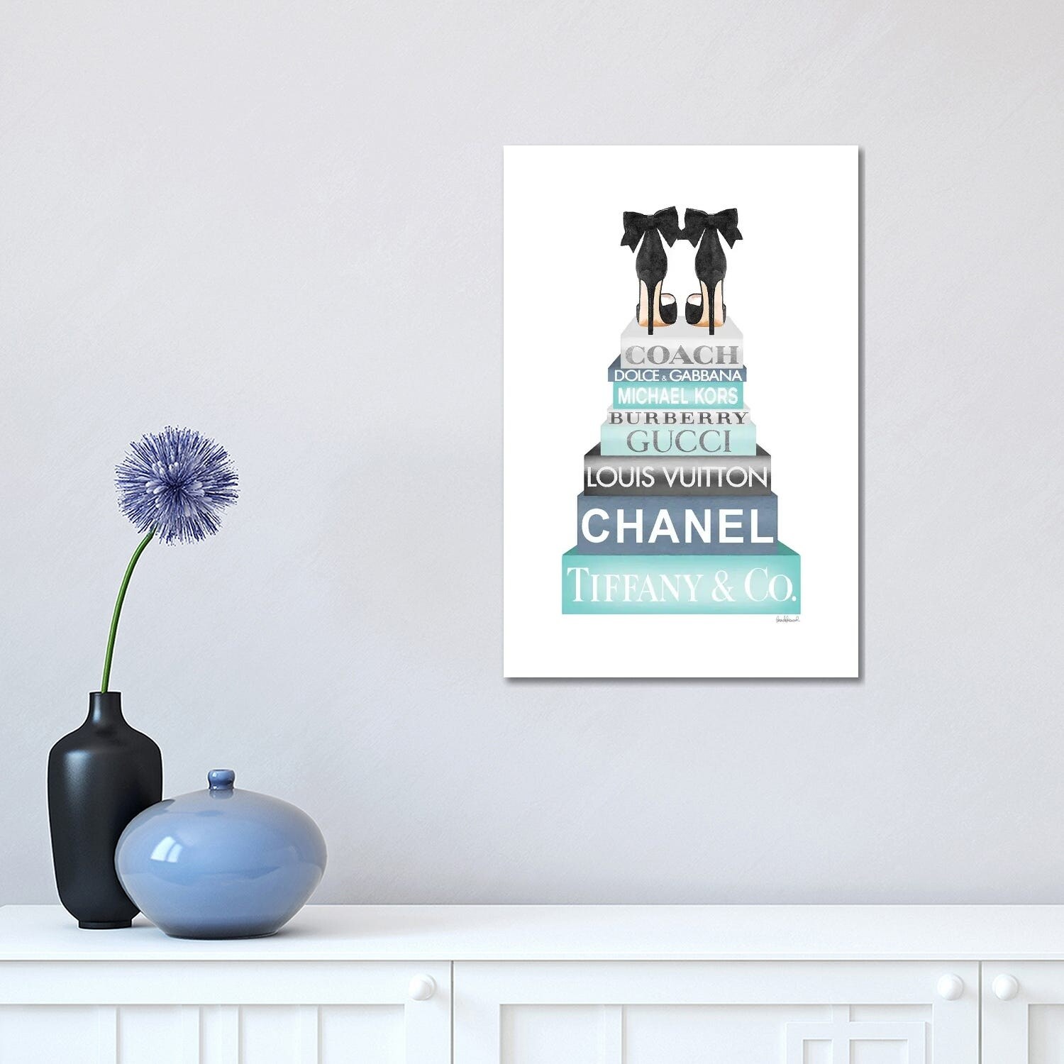 iCanvas "Tall Books, Blue, Teal And Grey With Bow Shoes" by Amanda Greenwood Canvas Print