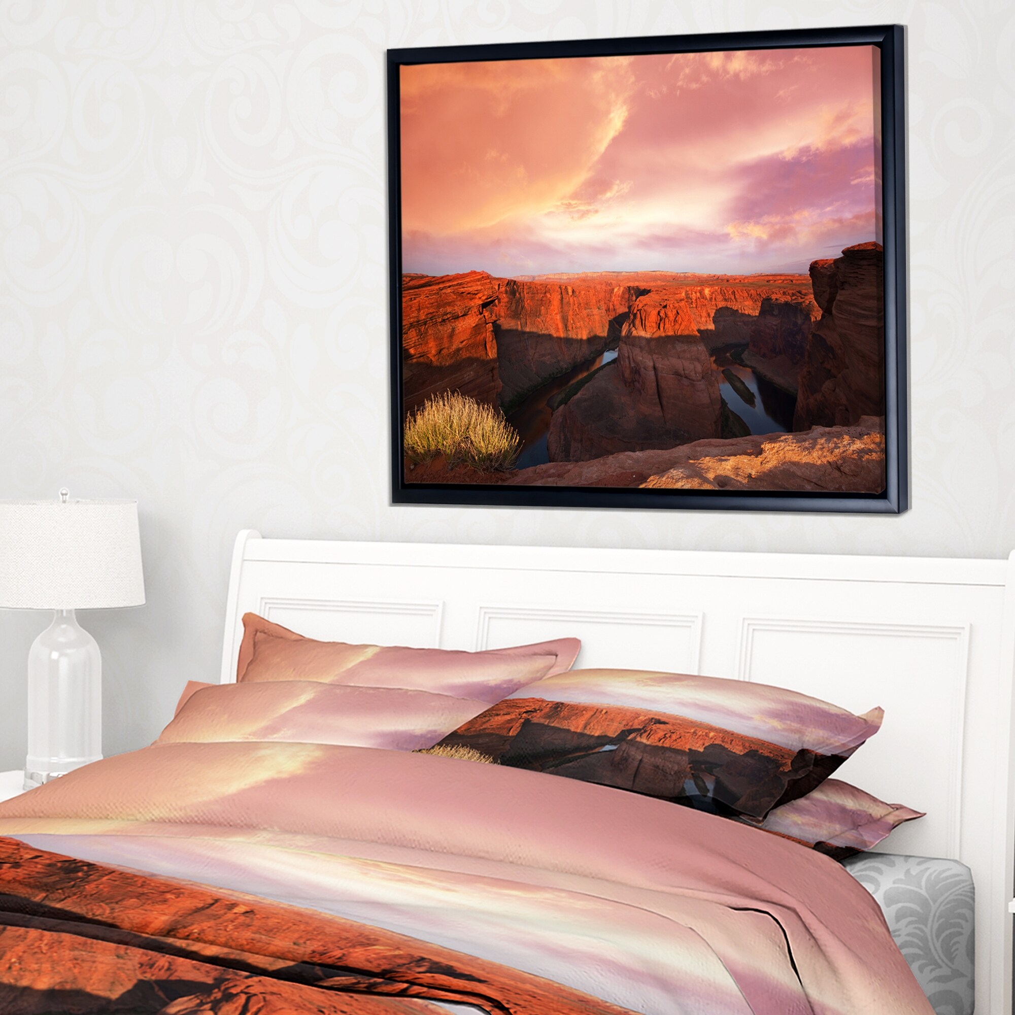 Designart "Horse Shoe Bend under Sunset Sky" Extra Large Landscape Canvas Art
