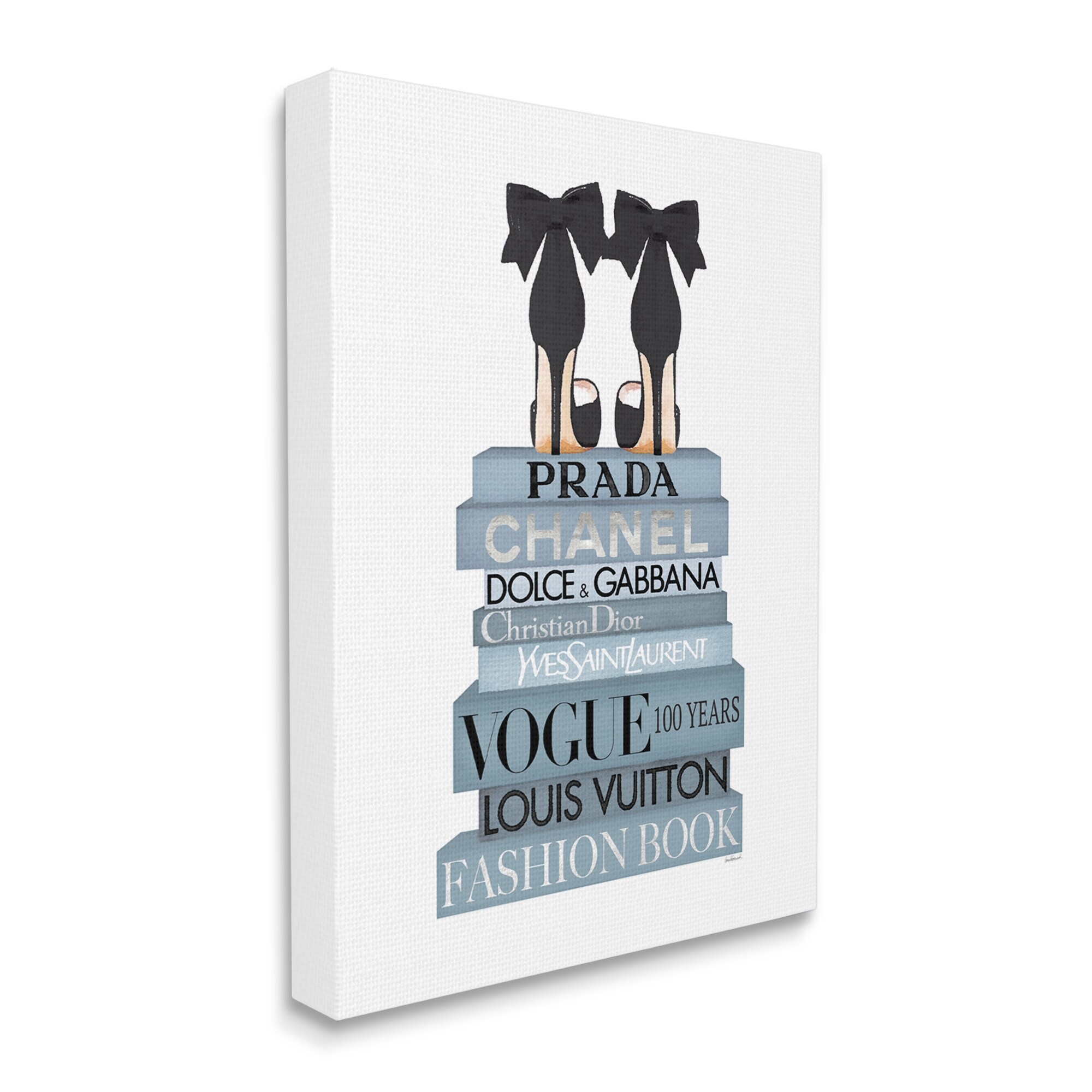Stupell Industries Fashion Designer Shoes Bookstack Blue Black Watercolor Canvas Wall Art, Proudly Made in USA