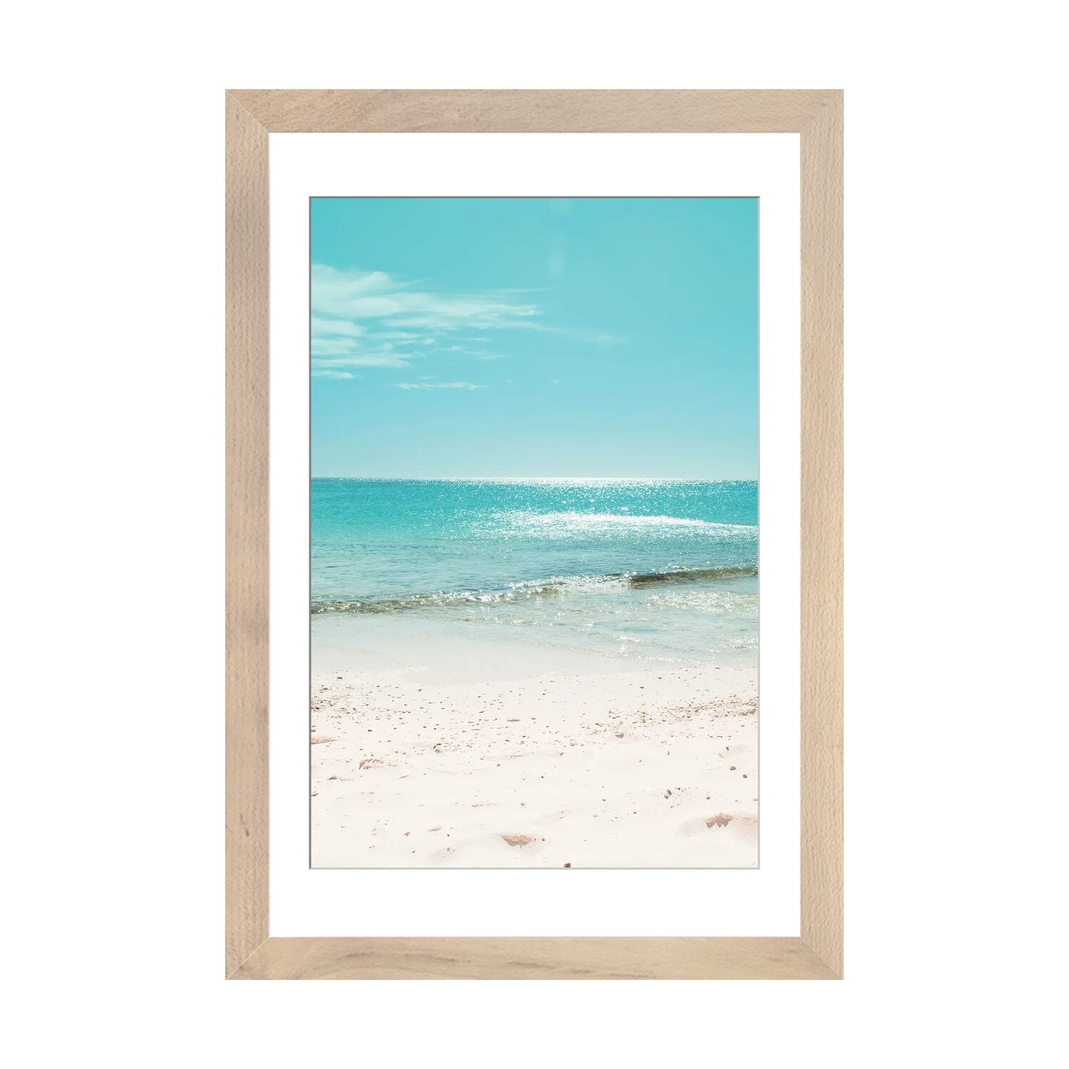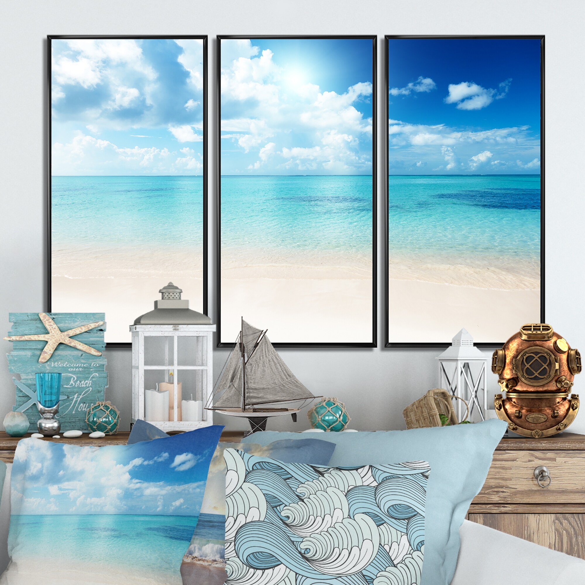 Designart "Sand of Beach in Blue Caribbean Sea" Sea & Shore Framed Artwork Set of 3 - 4 Colors of Frames