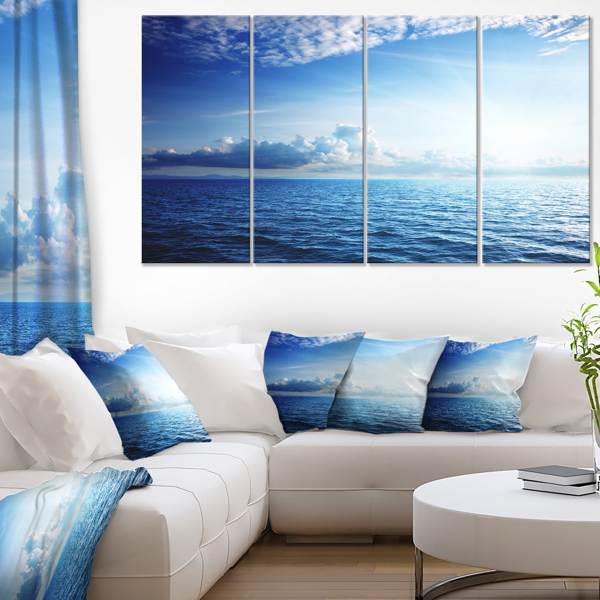 Designart "Blue Caribbean Sea and Perfect Blue Sky" Extra Large Seascape Art Framed Canvas