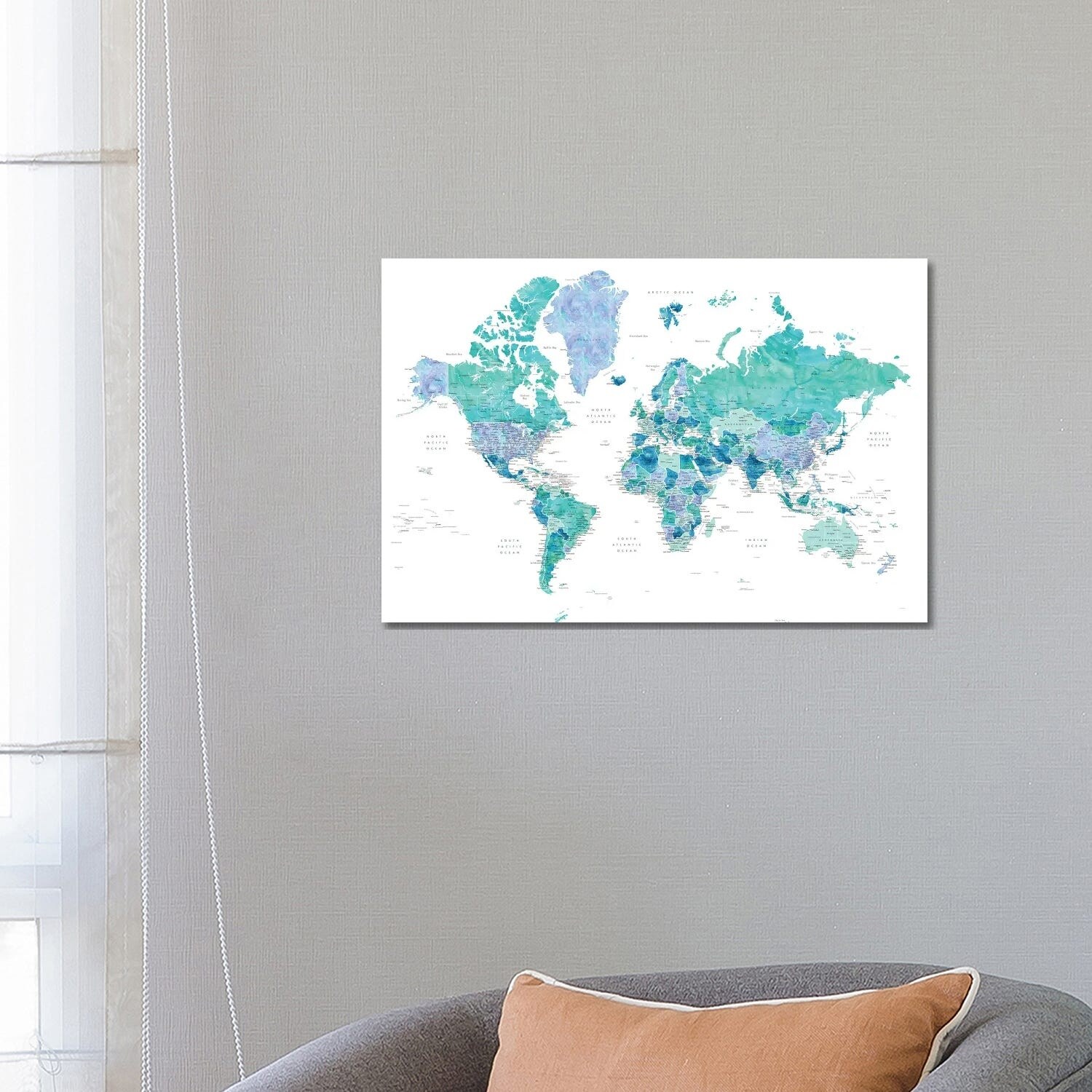iCanvas "Caribbean Waters Watercolor Detailed World Map" by blursbyai
