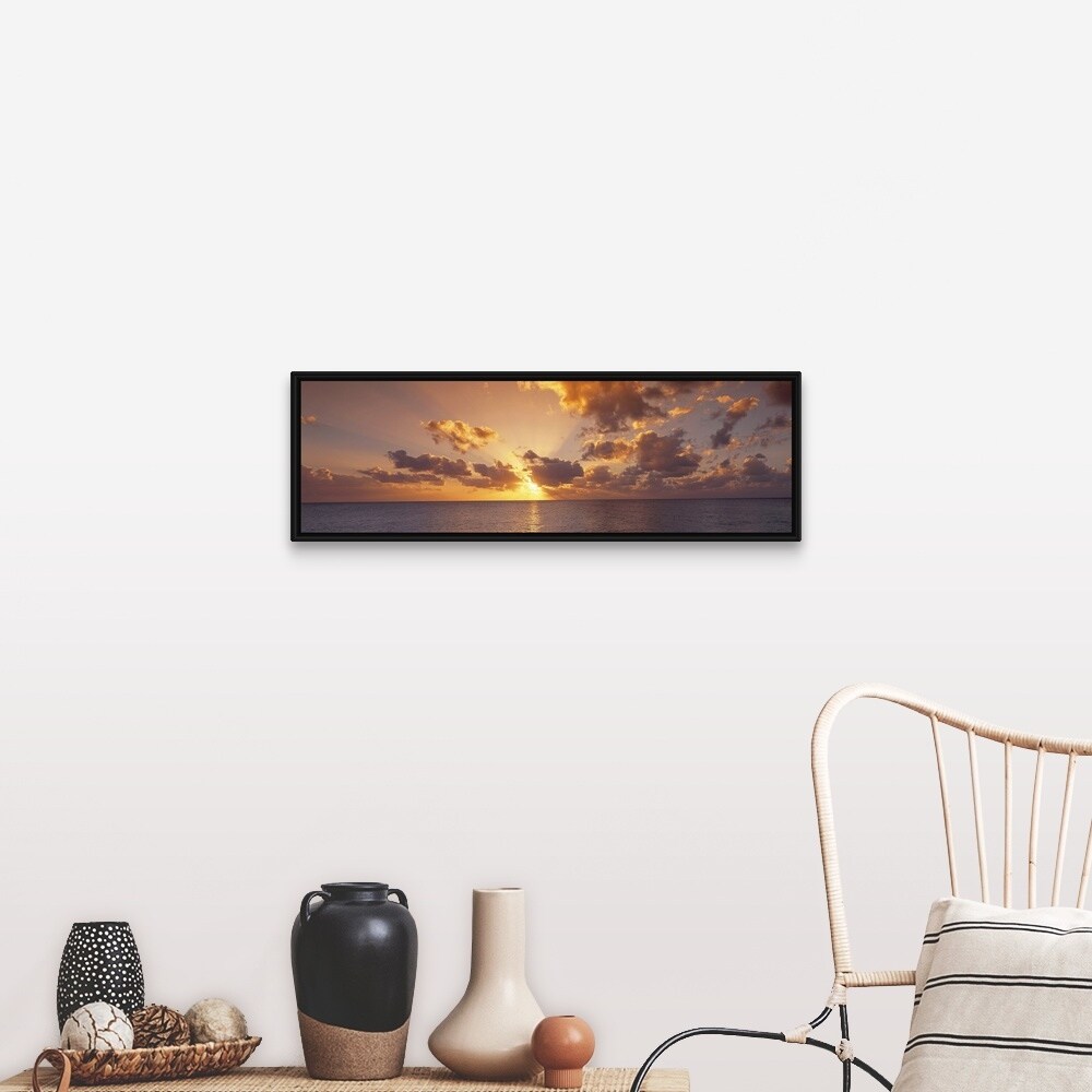 "Caribbean Sea, Cayman Islands, Seven Mile Beach, Sunset" Black Float Frame Canvas Art