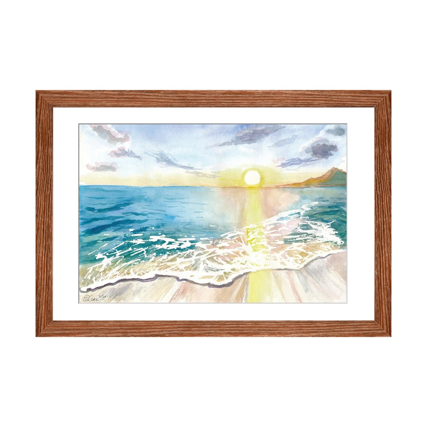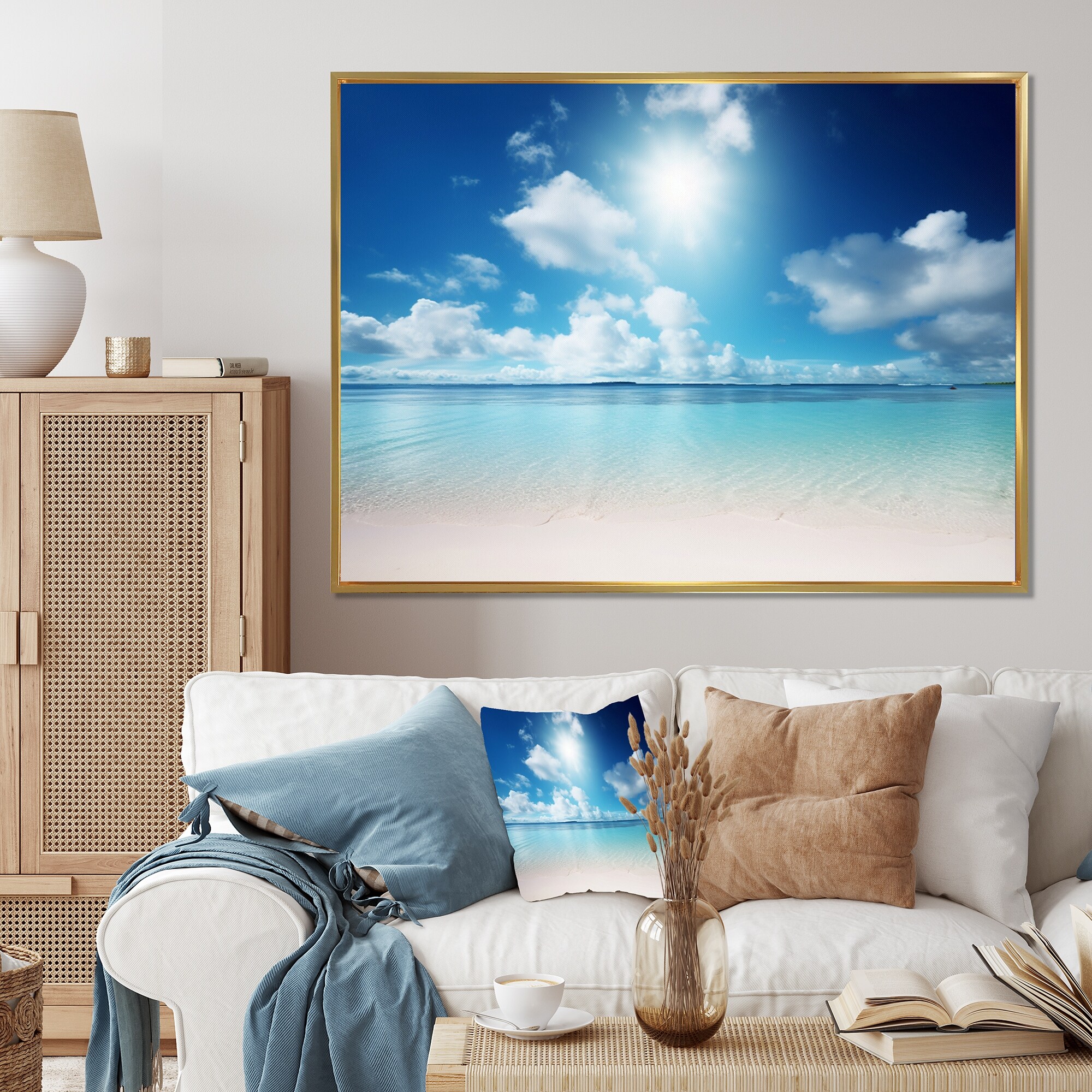 Designart "Sand and Blue Caribbean Sea IX" Coastal Sunset Framed Canvas Wall Art