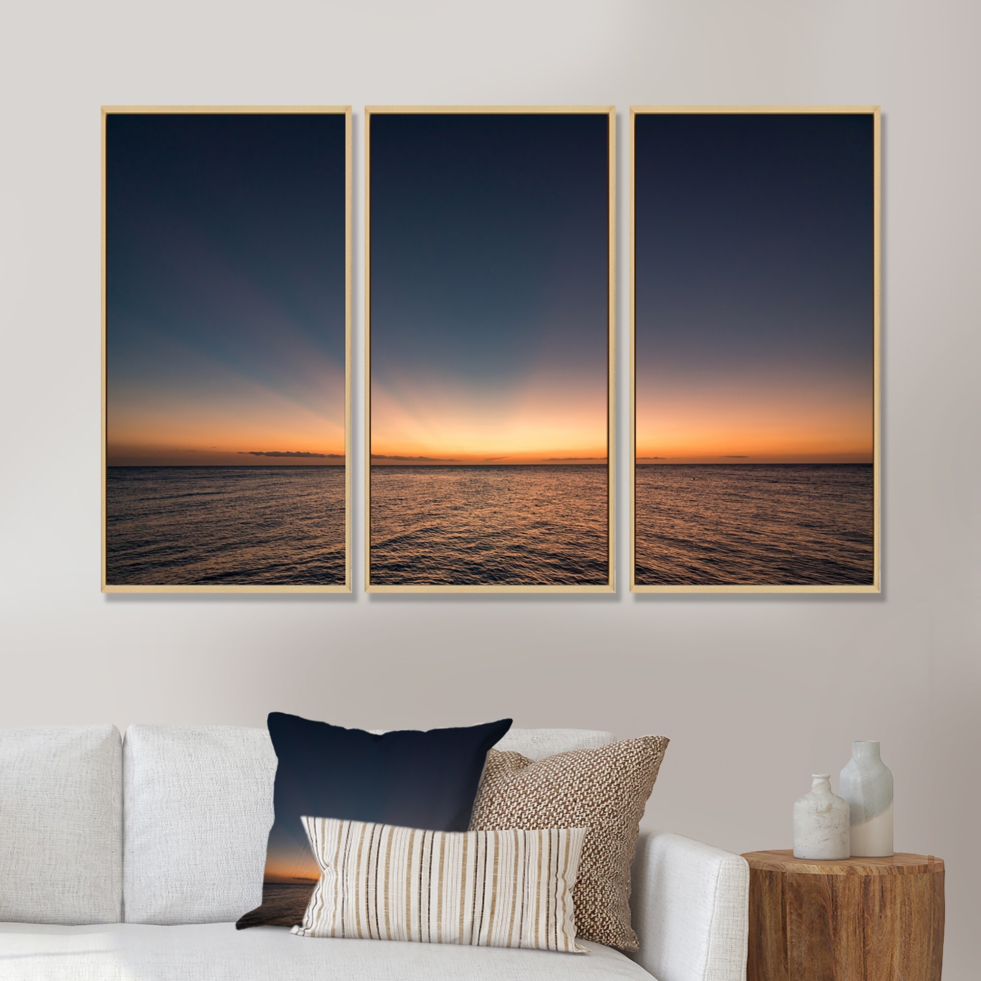 Designart "Sunrise on Beach of Caribbean Sea" Large Beach Framed Canvas Wall Art