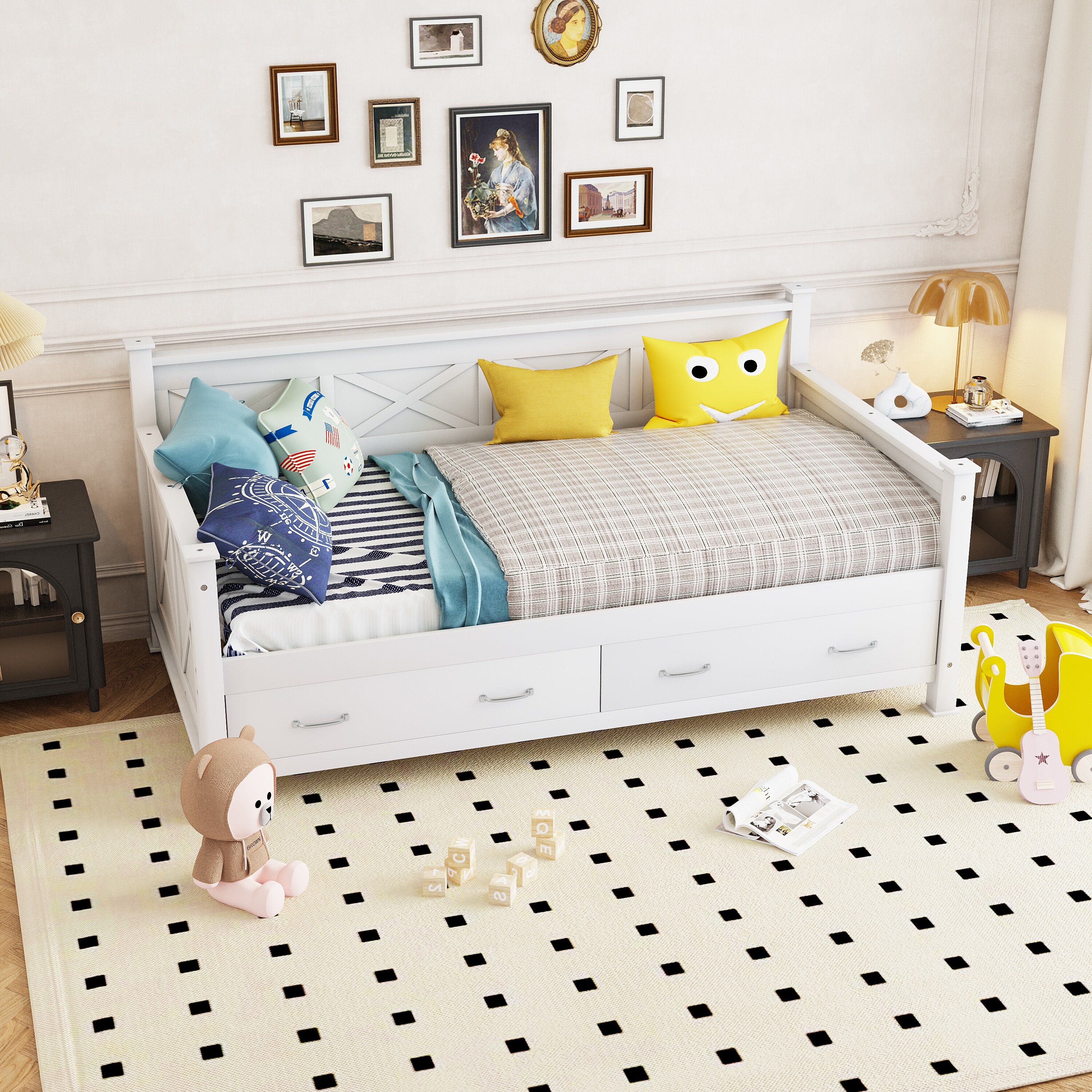 Twin Size Daybed with 2 Large Drawers, Rustic Casual Style, X-Shaped Wooden Bedframe with Strong Slat Support for Kids Bedroom