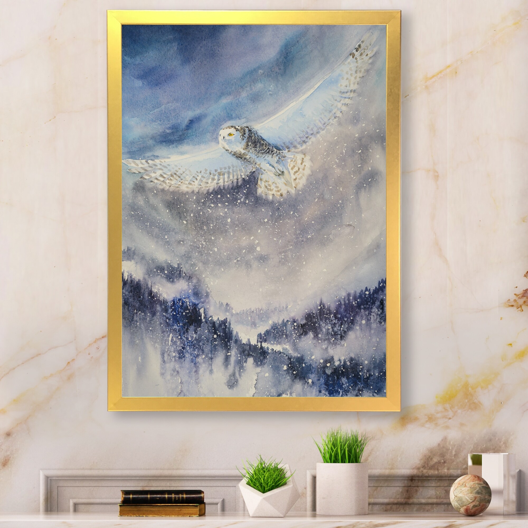Designart "Snowy Owl" Children's Art Framed artwork