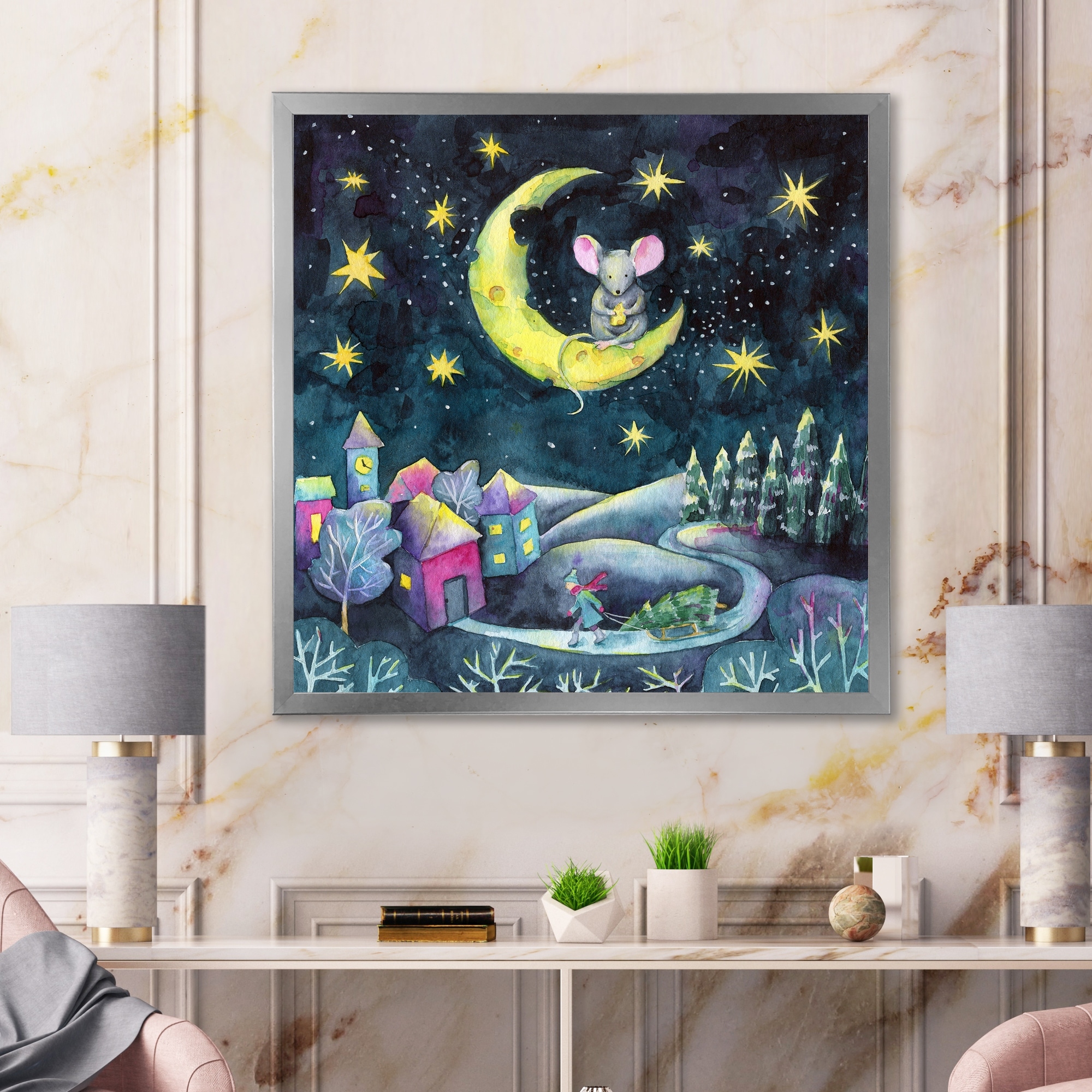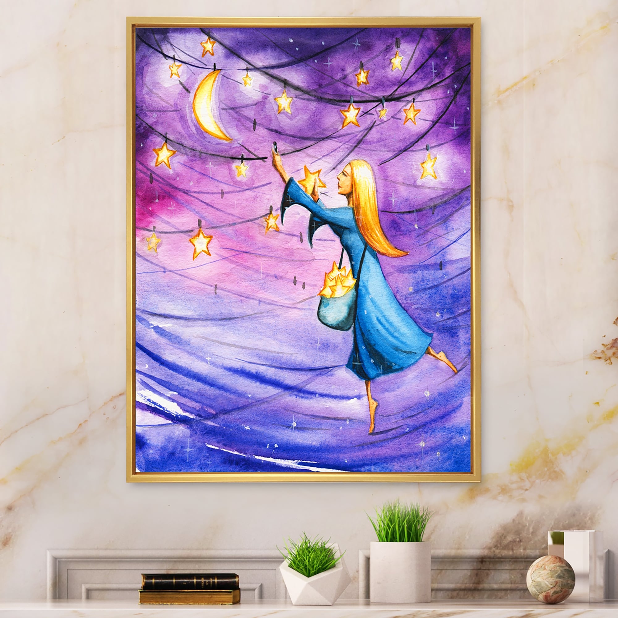 Designart "Magical Night With Skies" Children's Art Framed Canvas Wall Decor