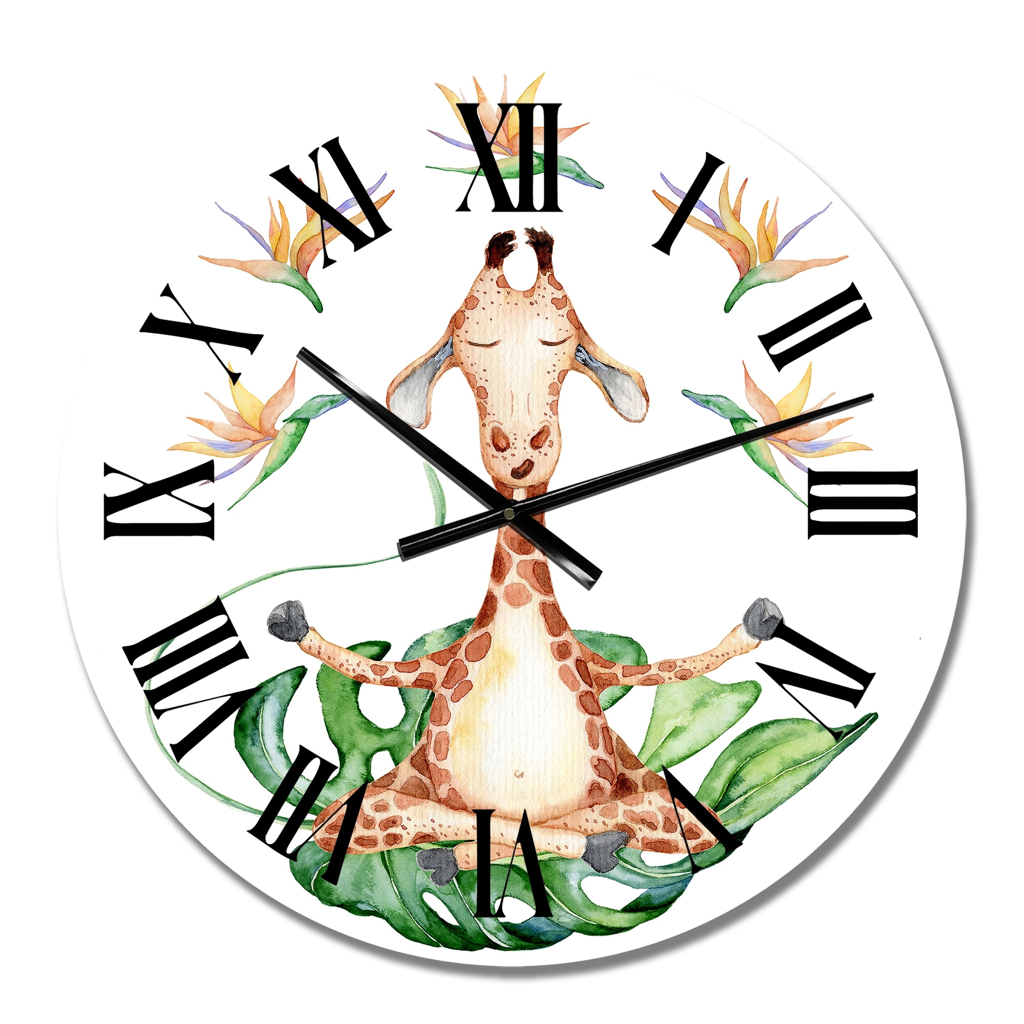 Designart 'Cartoon Giraffe With Tropical Flowers V' Children's Art wall clock