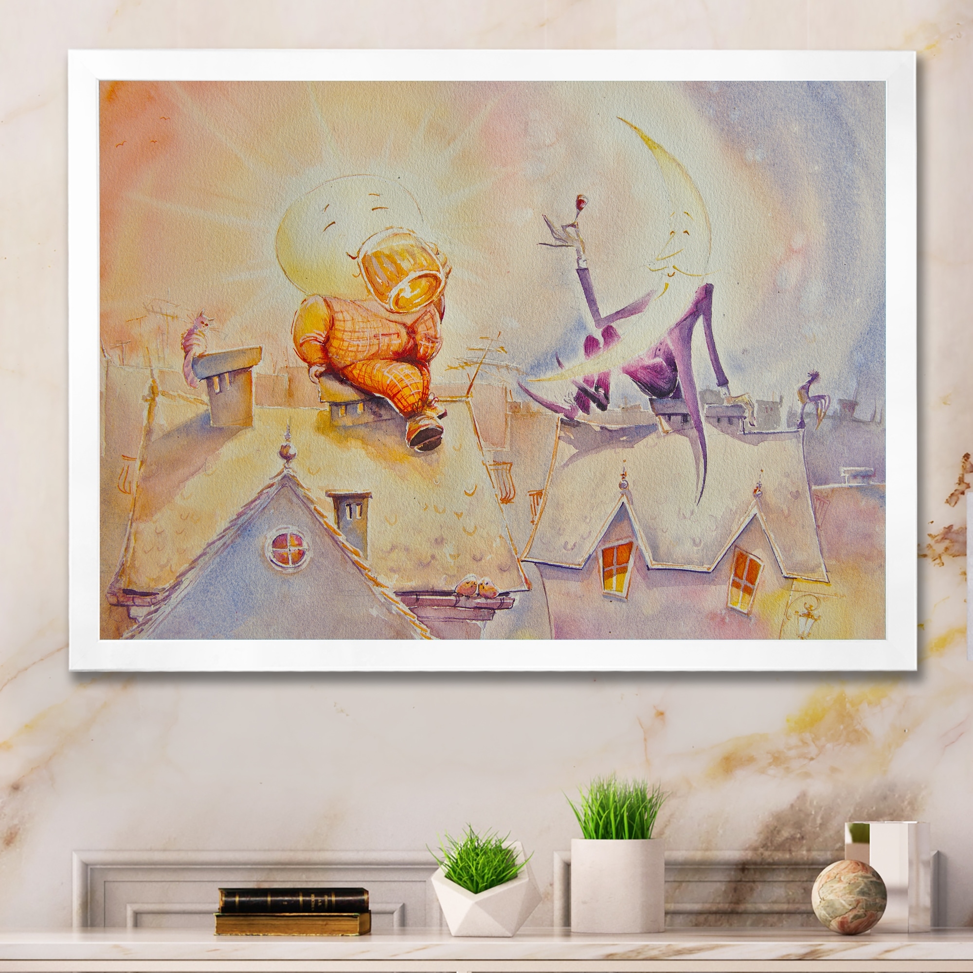 Designart "Night Watercolors" Children's Art Framed Wall Art