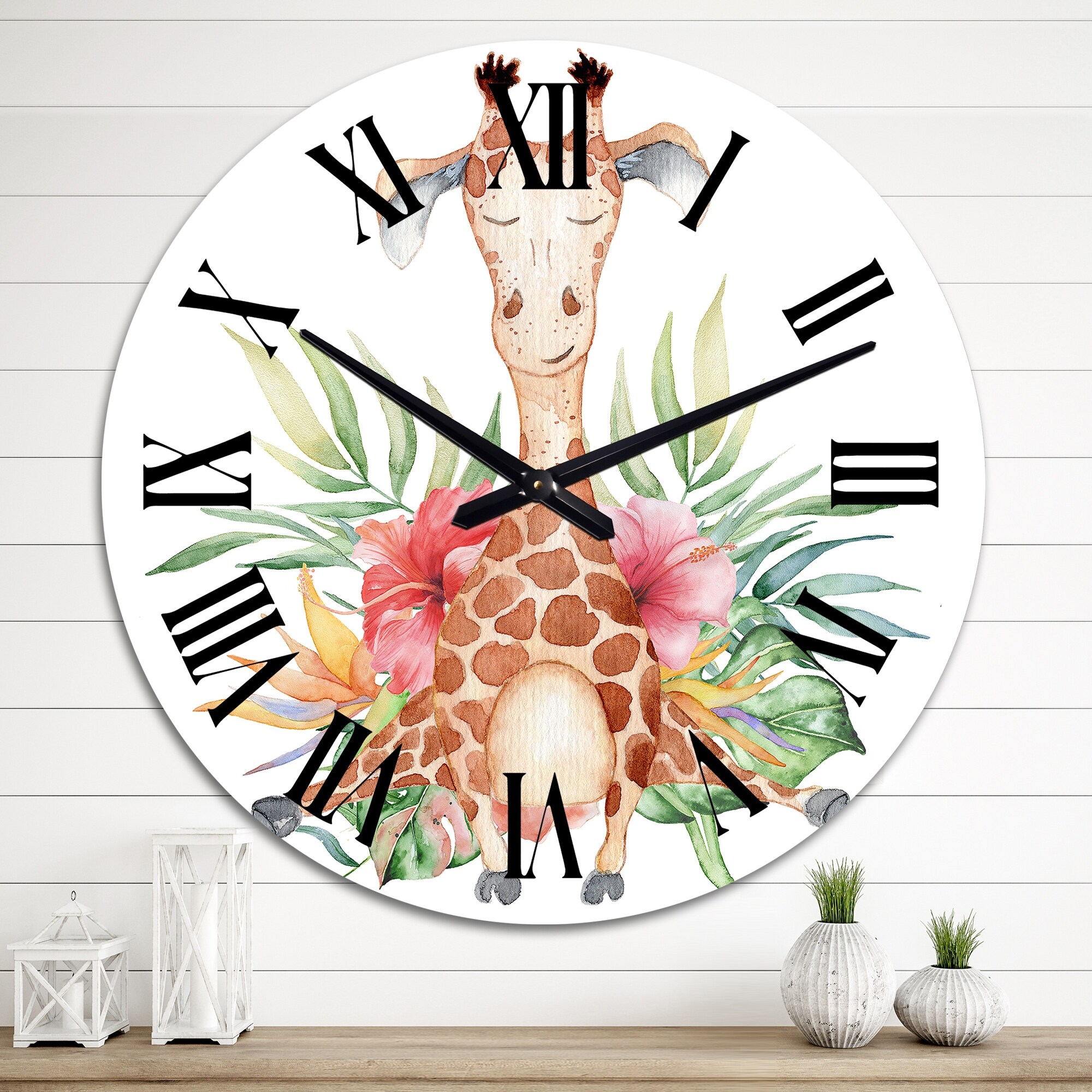 Designart 'Cartoon Giraffe With Tropical Flowers III' Children's Art wall clock