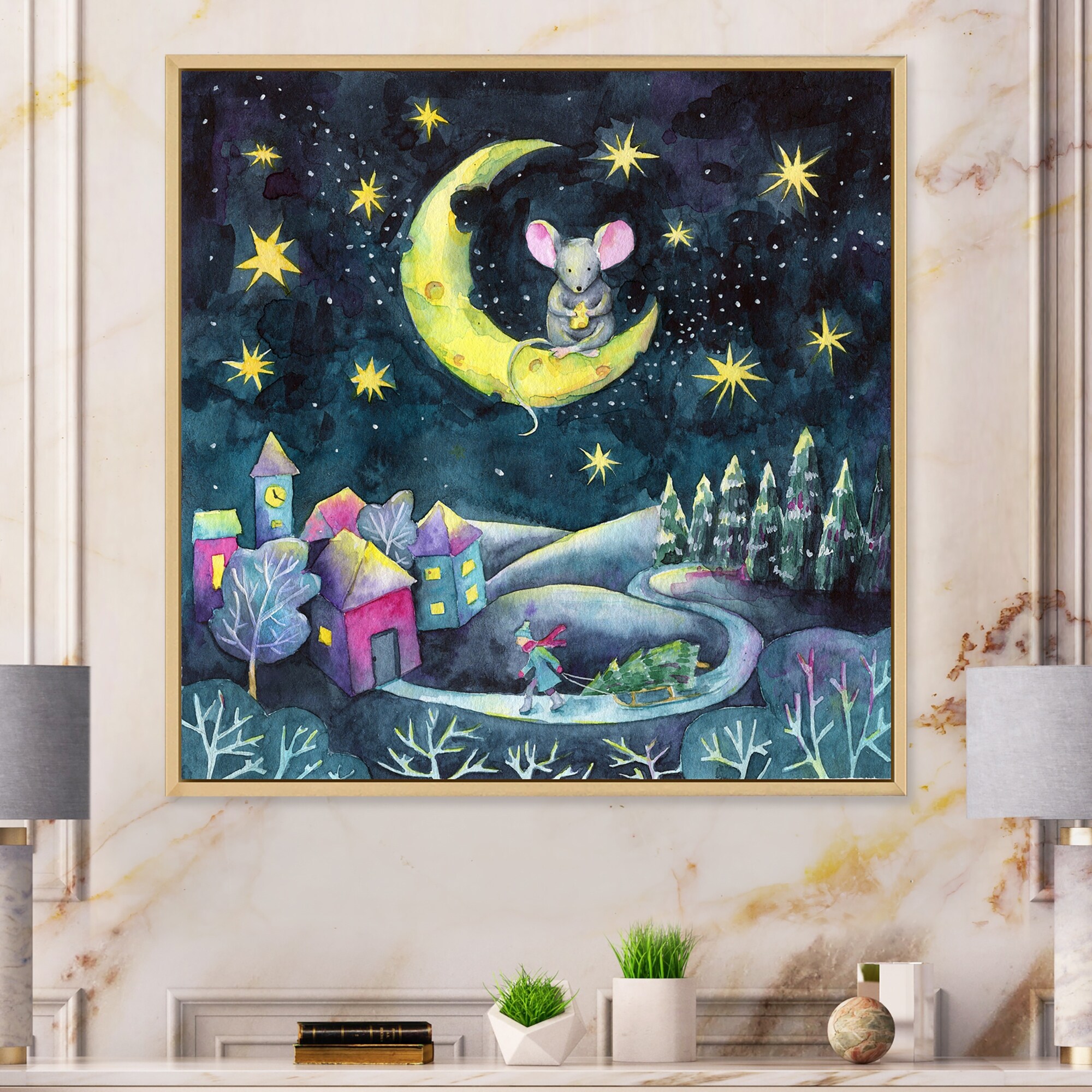 Designart "Christmas Illustration" Children's Art Framed Christmas Canvas Wall Art