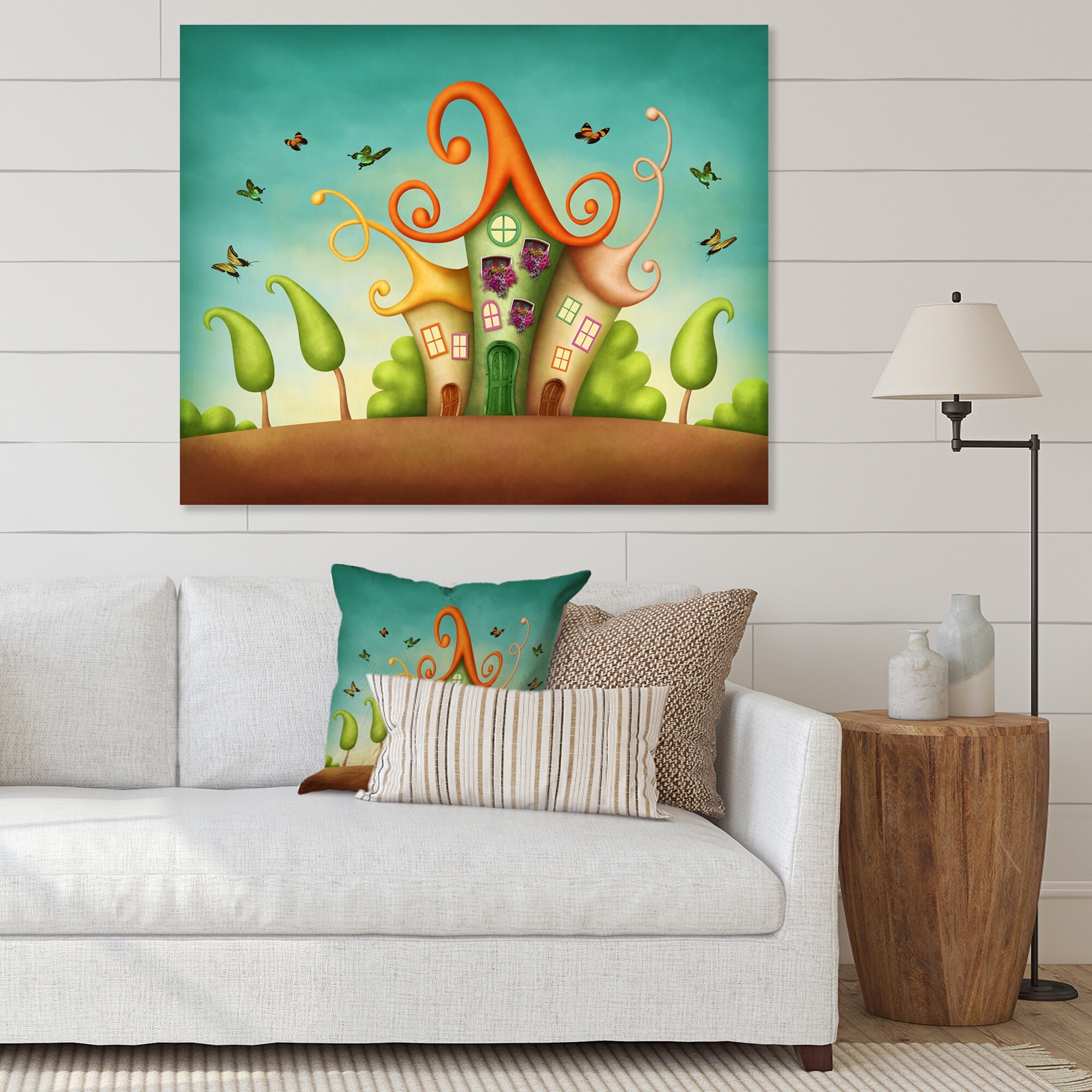 Designart "Blue Fantasy Castles With Red Roofs I" Children's Art Canvas Wall Art Print