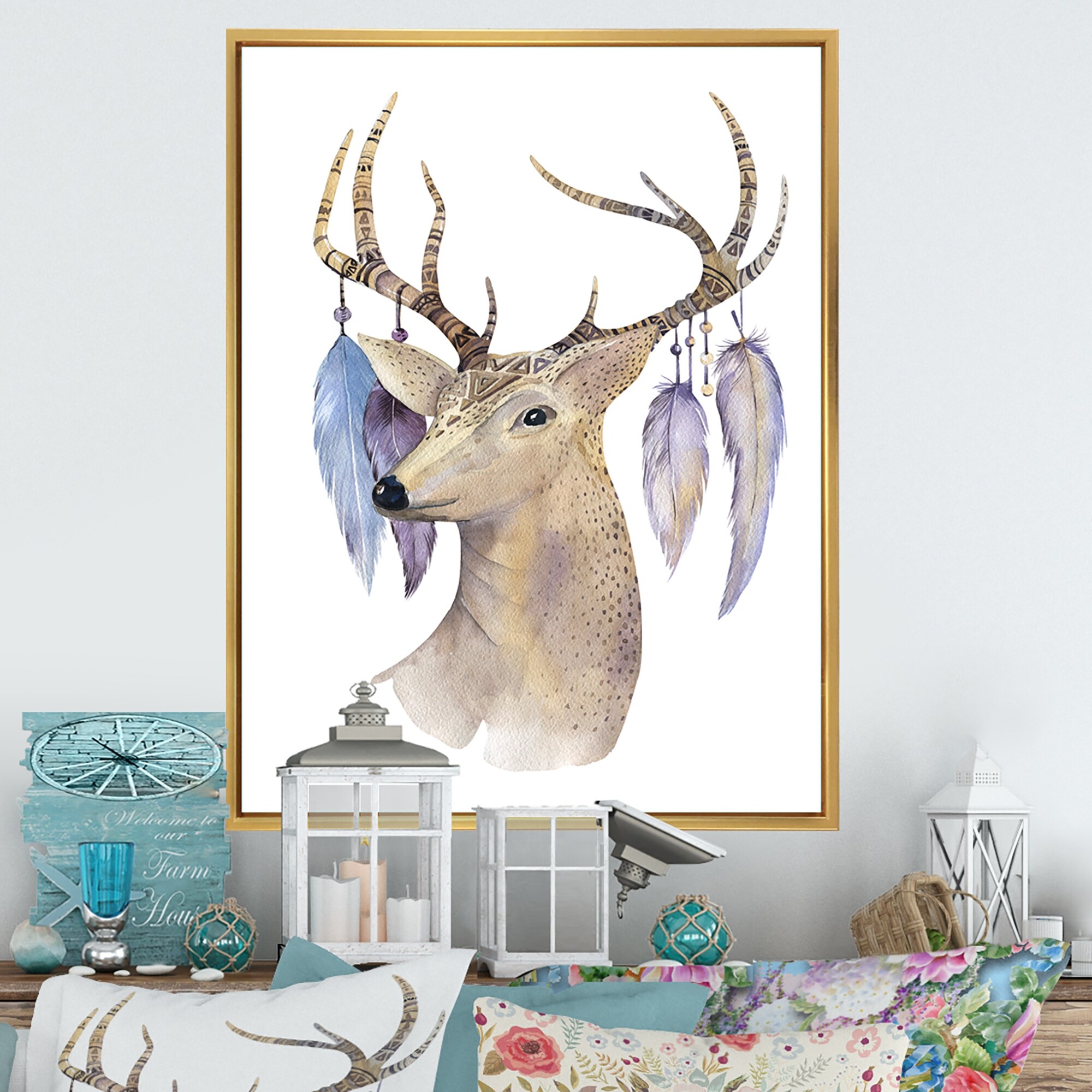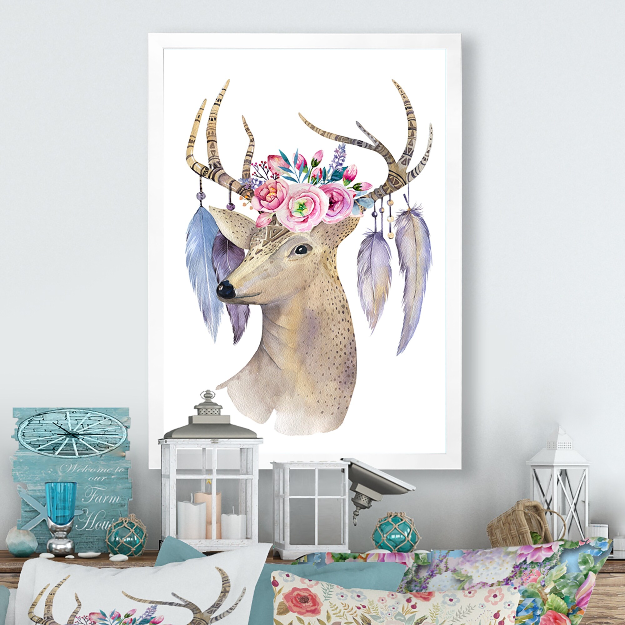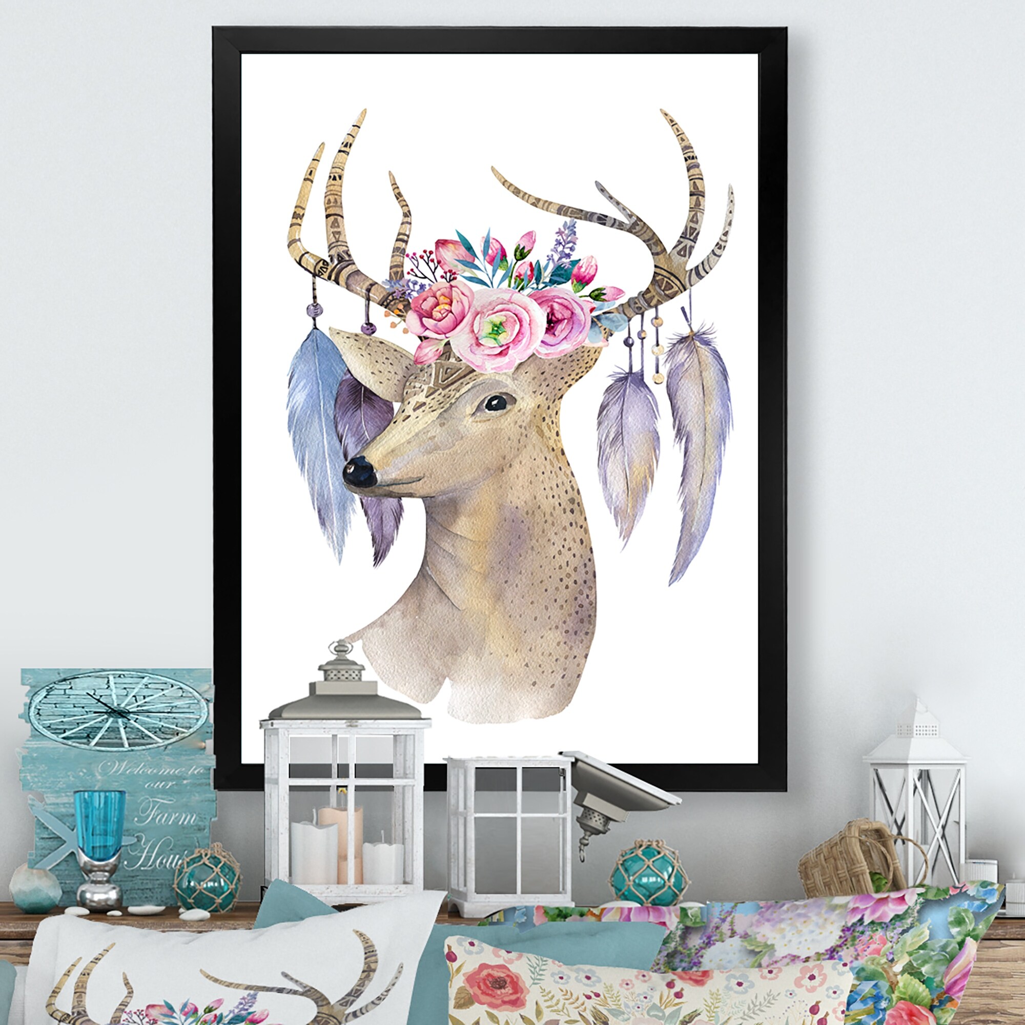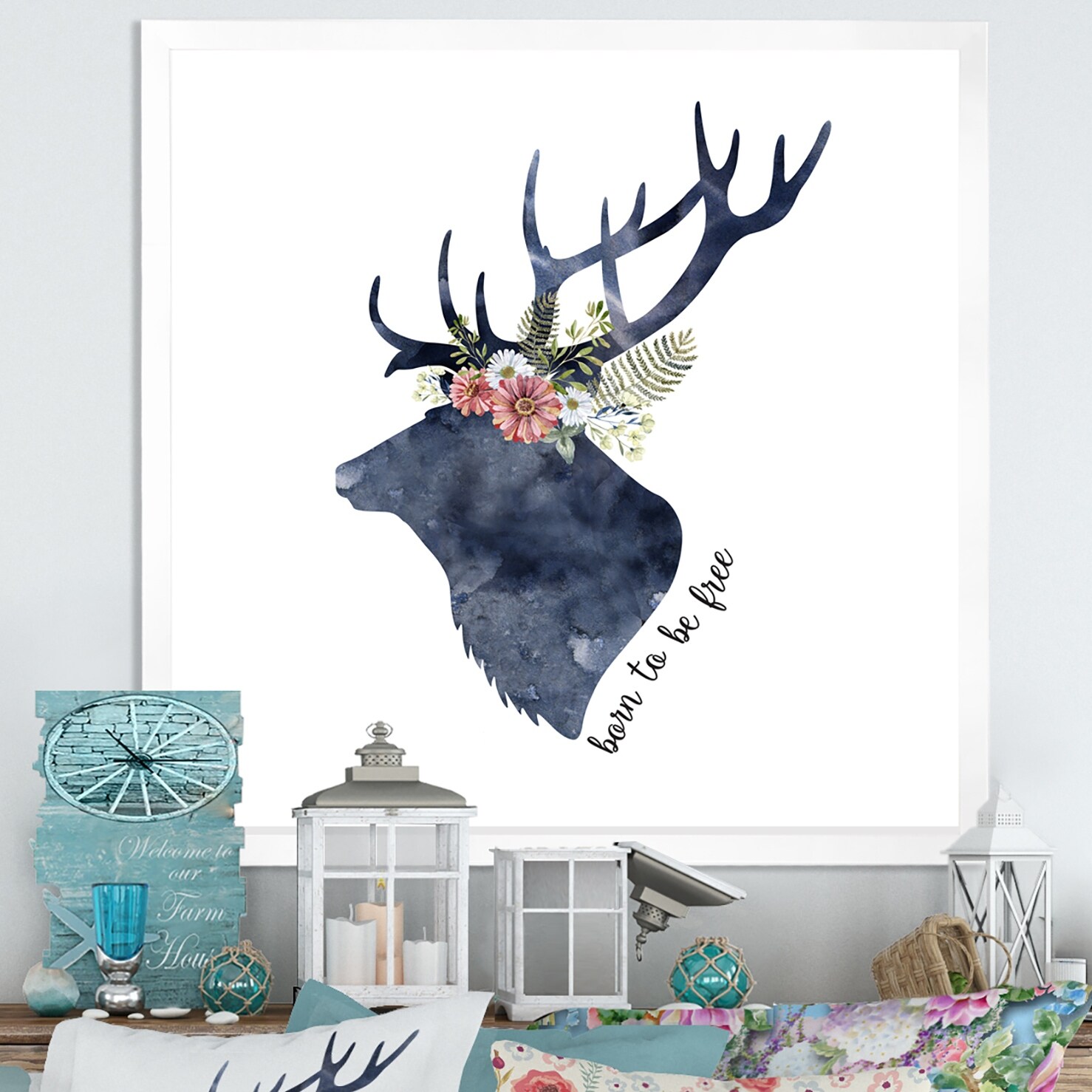 Designart "Botanical Deer Head Silhouette" Traditional Framed Children's Wall Art