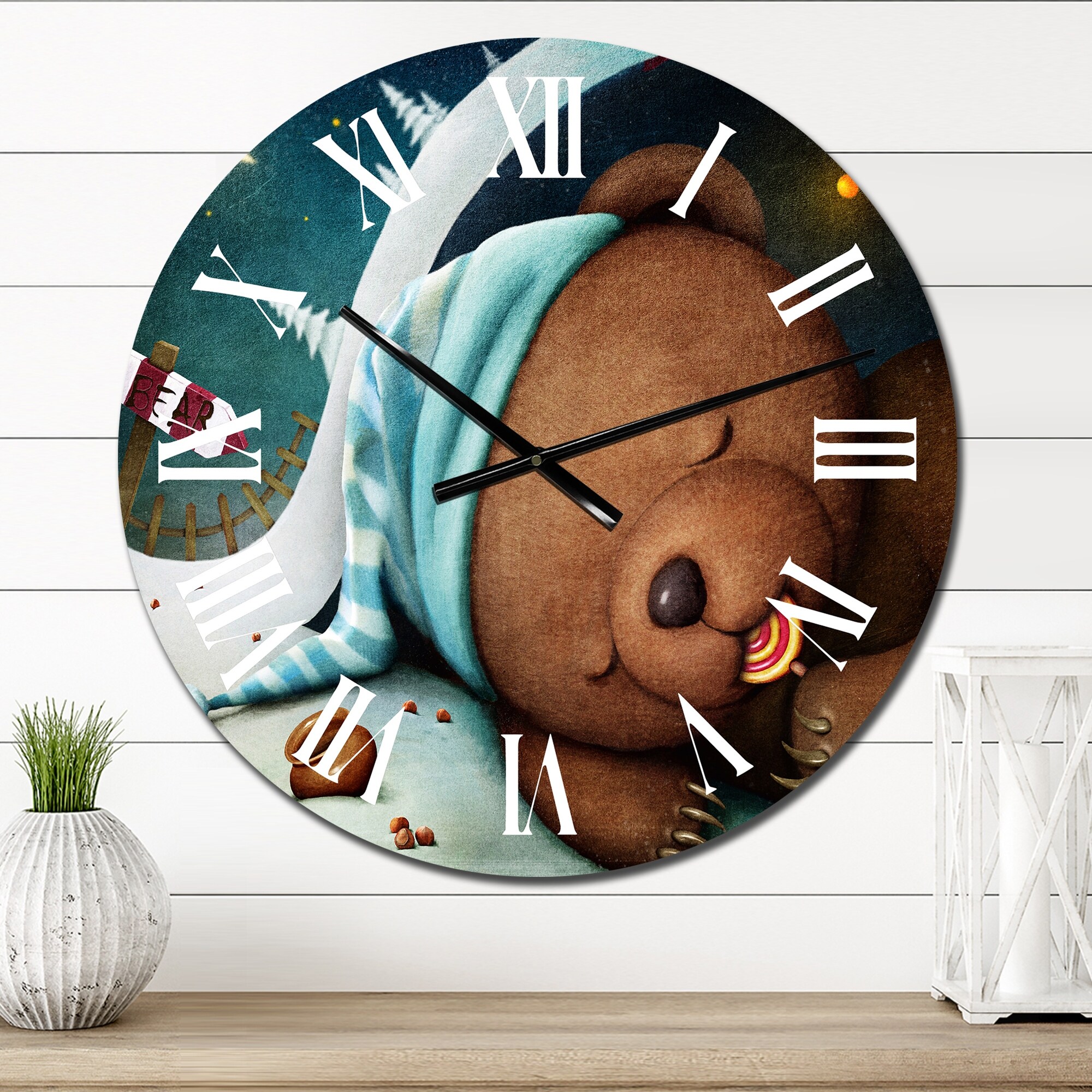 Designart 'Bear Sleeping in the Den' Children's Art wall clock