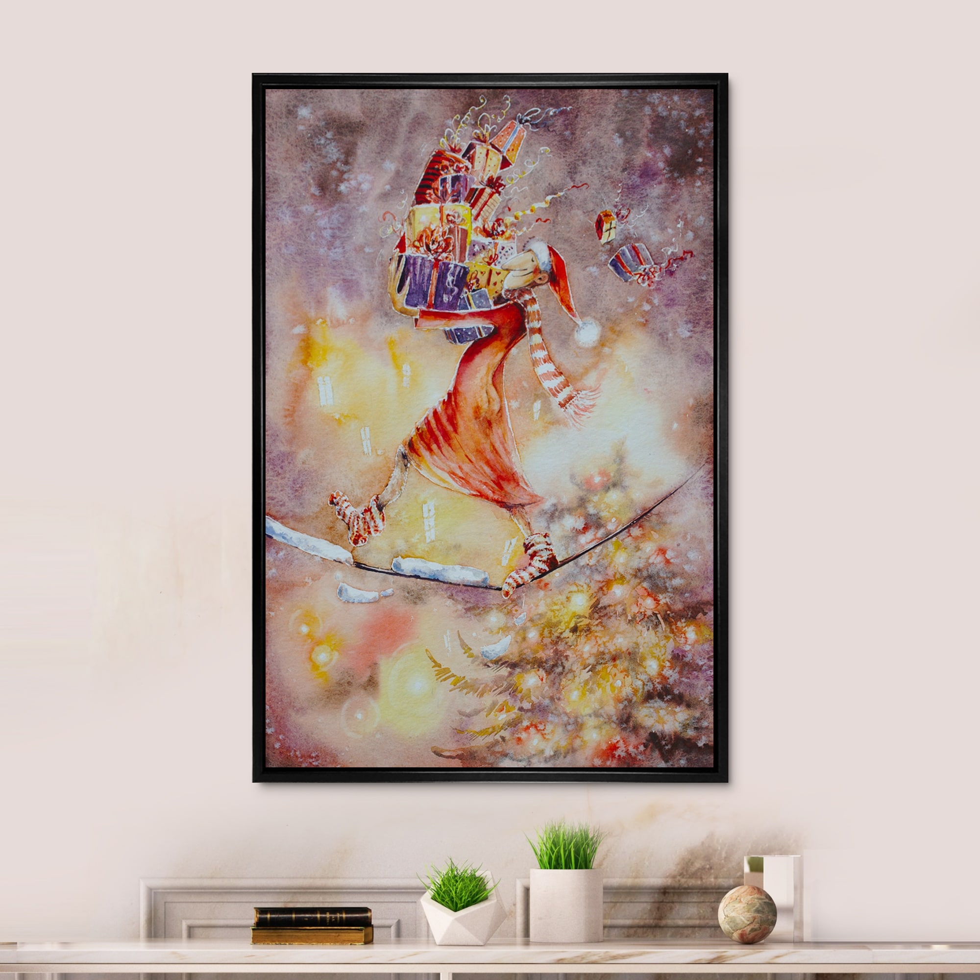 Designart "Christmas Illustration" Children's Art Framed Christmas Wall Art