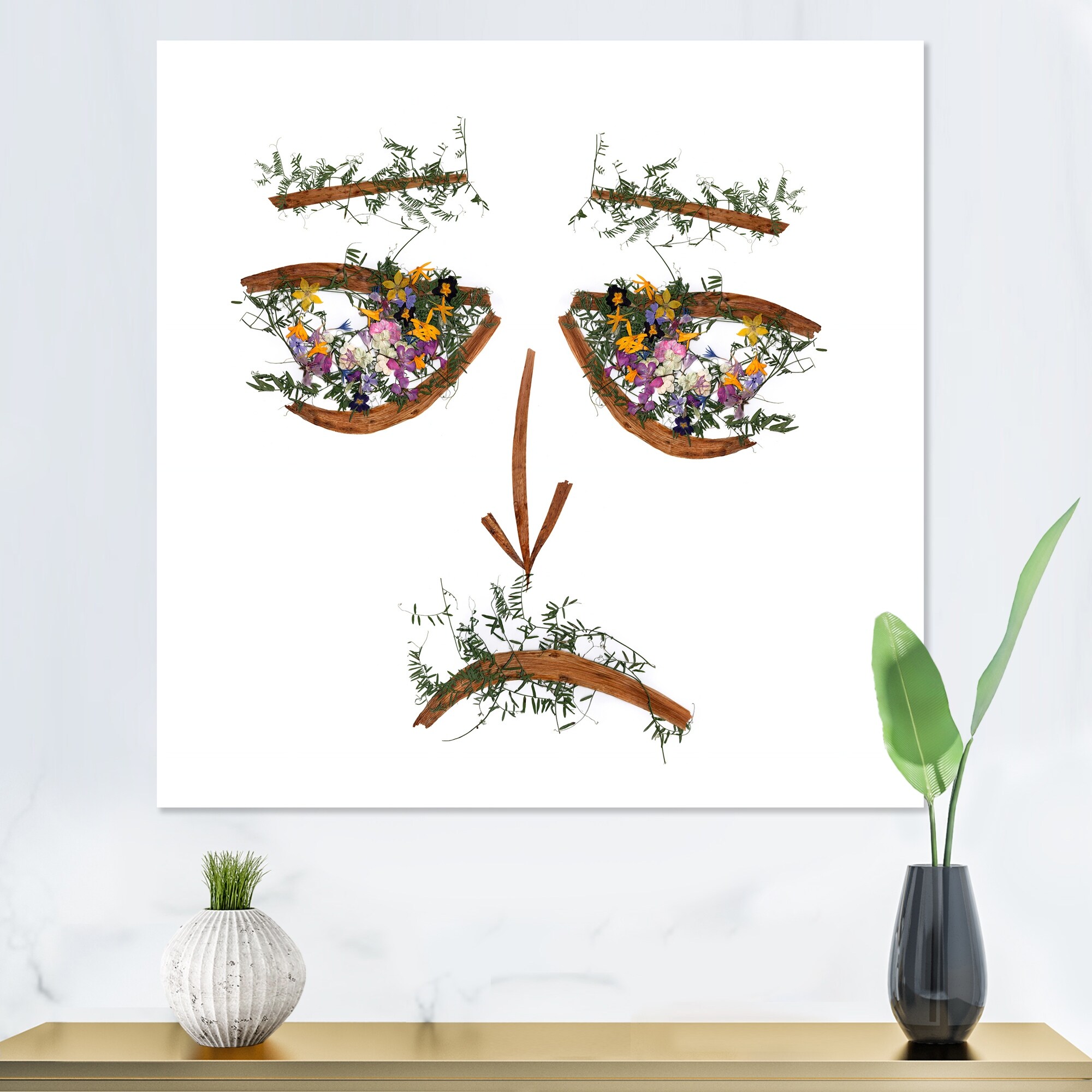 Designart "Sad Male Face of Dried Pressing Bright Flowers" Children's Art Canvas Wall Art Print