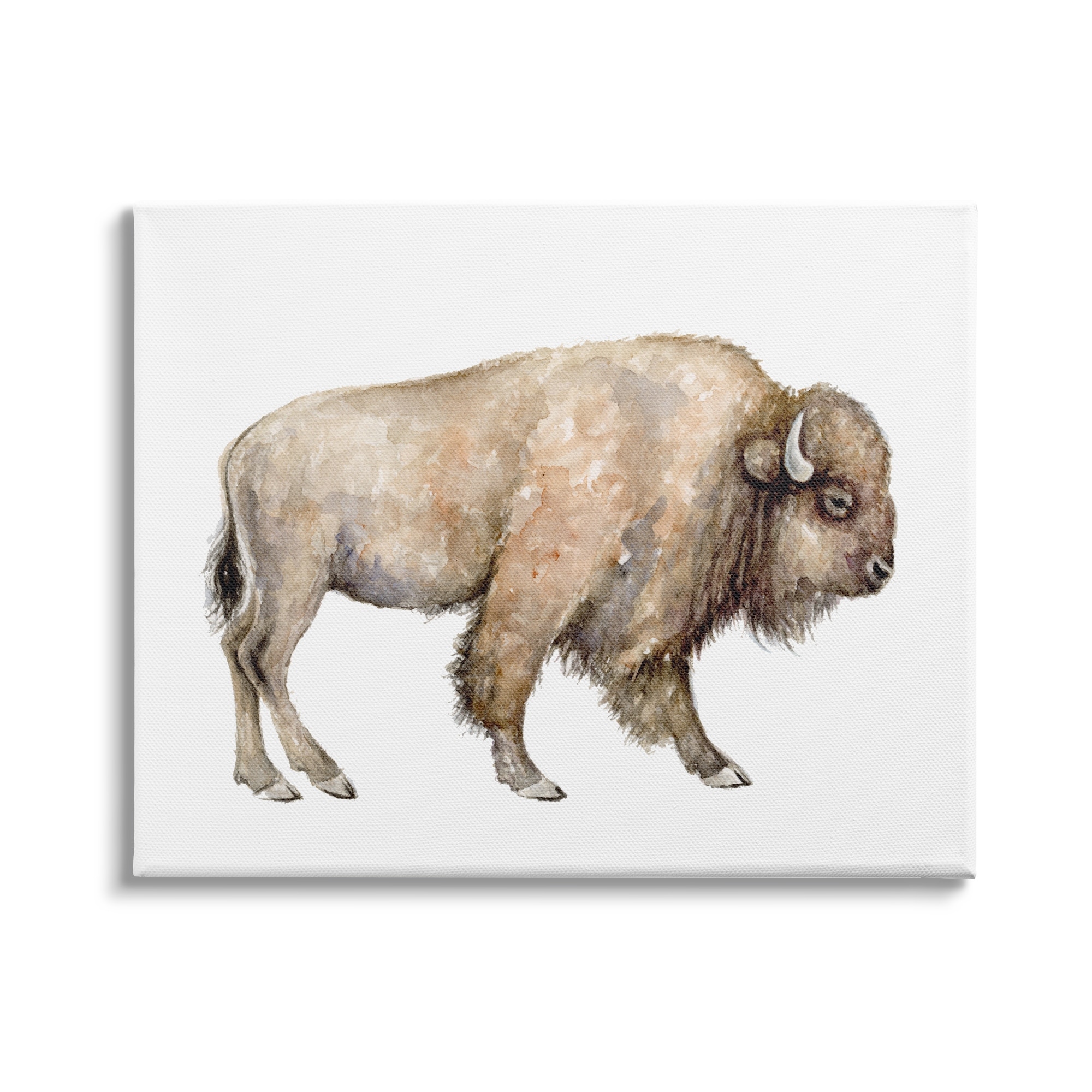 Stupell Wild Buffalo Watercolor Portrait Children's Nursery Wildlife Canvas Wall Art - Brown