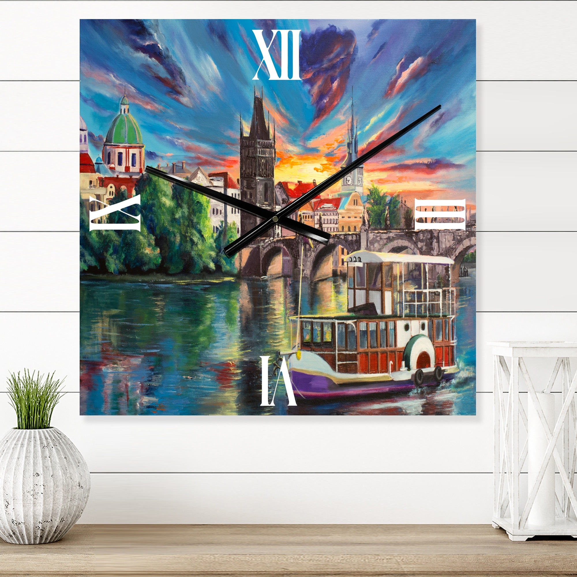 Designart 'Cityview Of Prague By Sunset' Children's Art Large Wall Clock