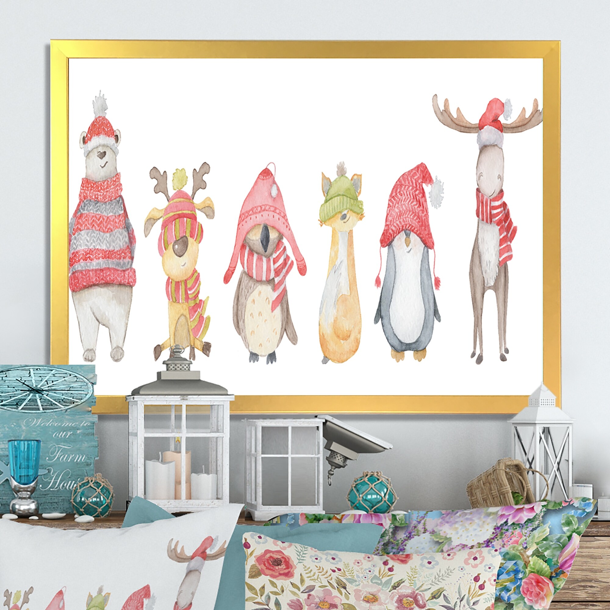 Designart "Cute Christmas Animals Polar Bear" Traditional Framed Children's artwork