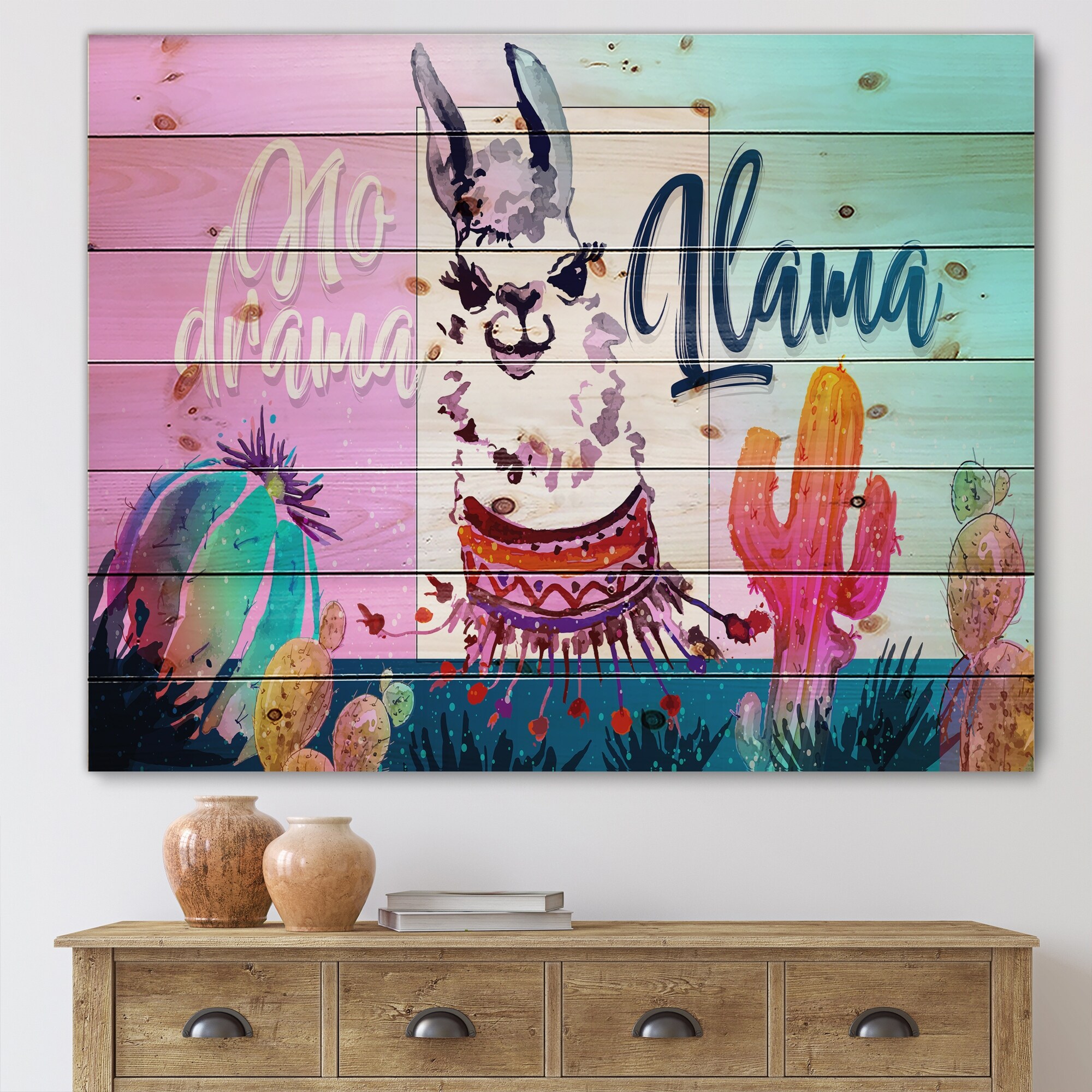 Designart 'No Drama Llama' Children's Art Print on Natural Pine Wood