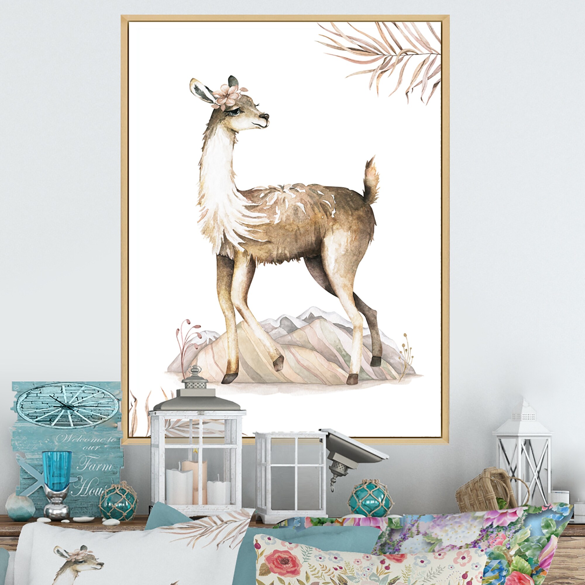 Designart "Cute Lama Head Cartoon for Kids III" Traditional Framed Children's Canvas Wall Decor