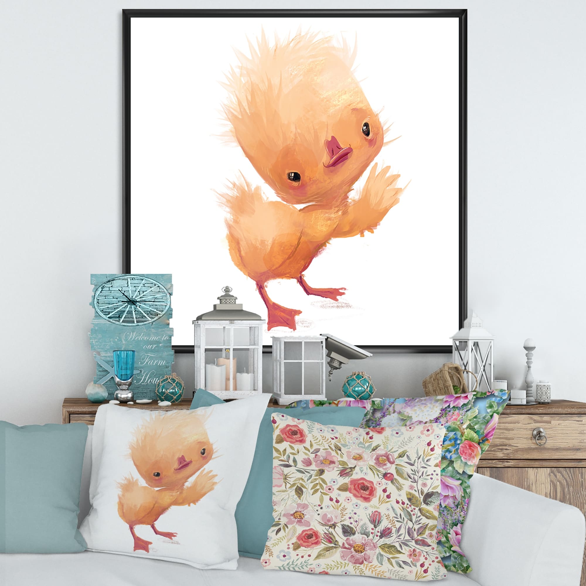 Designart "Cute Funny Little Yellow Duckling Character" Children's Art Framed Canvas Wall Art Print