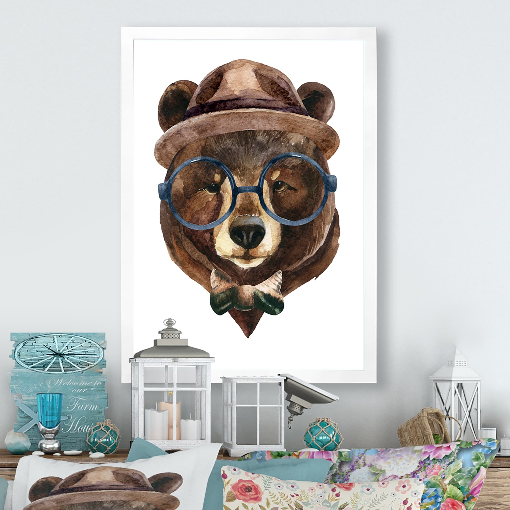 Designart "Portrait Of a Bear With Glasses" Traditional Framed Children's artwork
