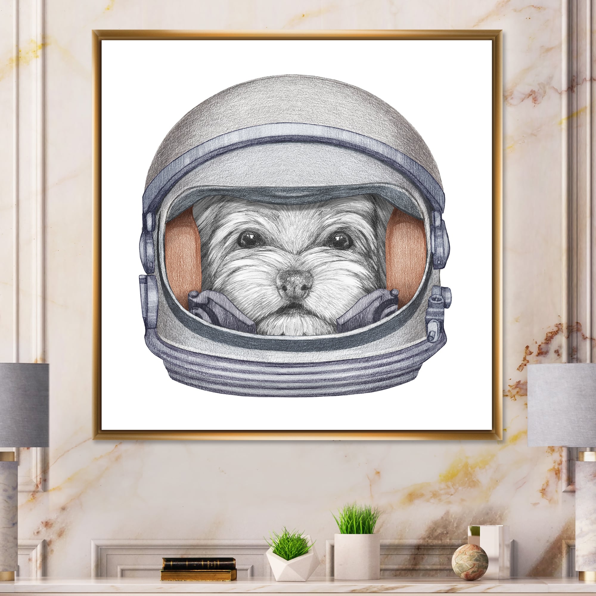 Designart "Cartoon Portrait of a Space Dog" Children's Art Framed Canvas Wall Art