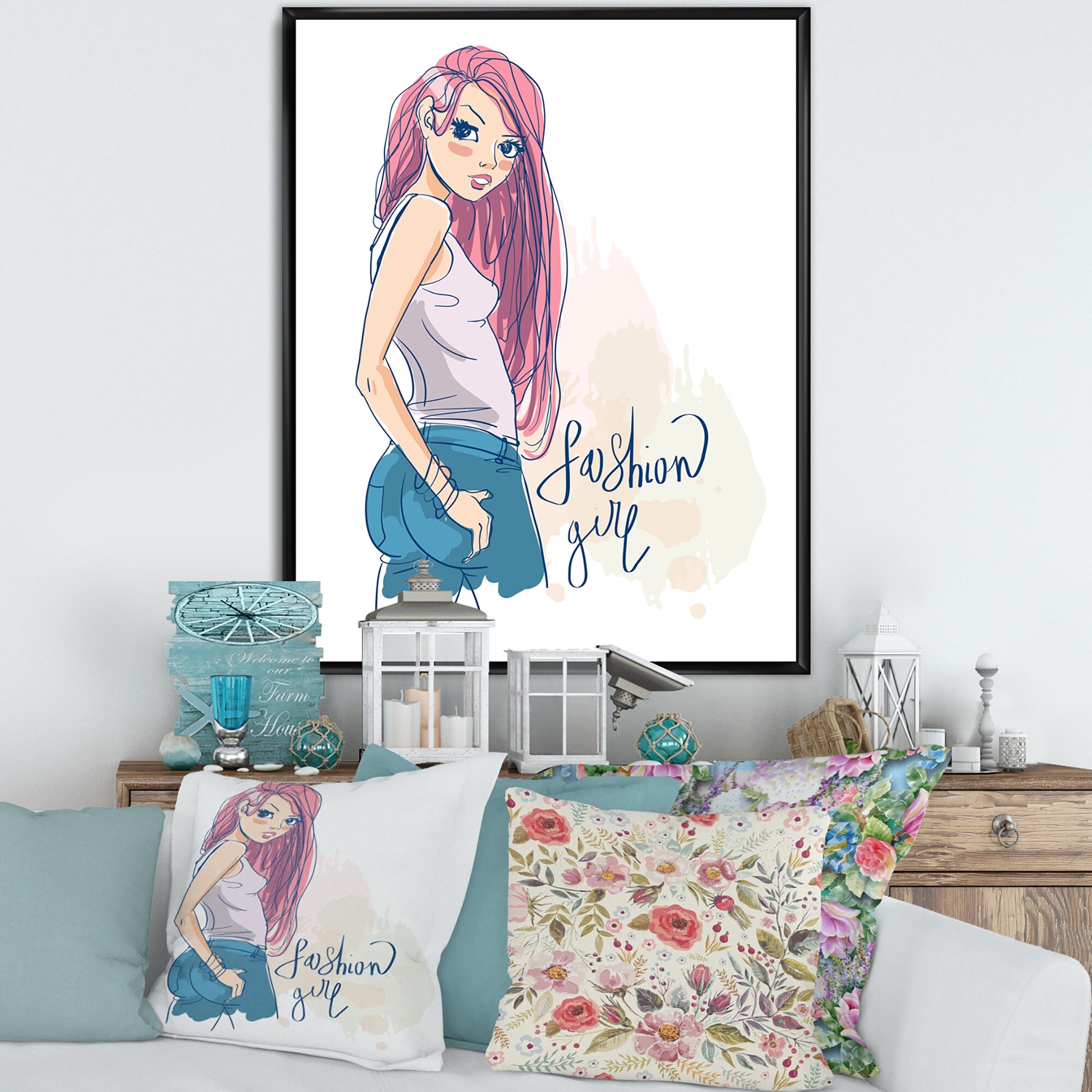 Designart "Trendy Fashion Girl I" Children's Art Framed Canvas Wall Art Print