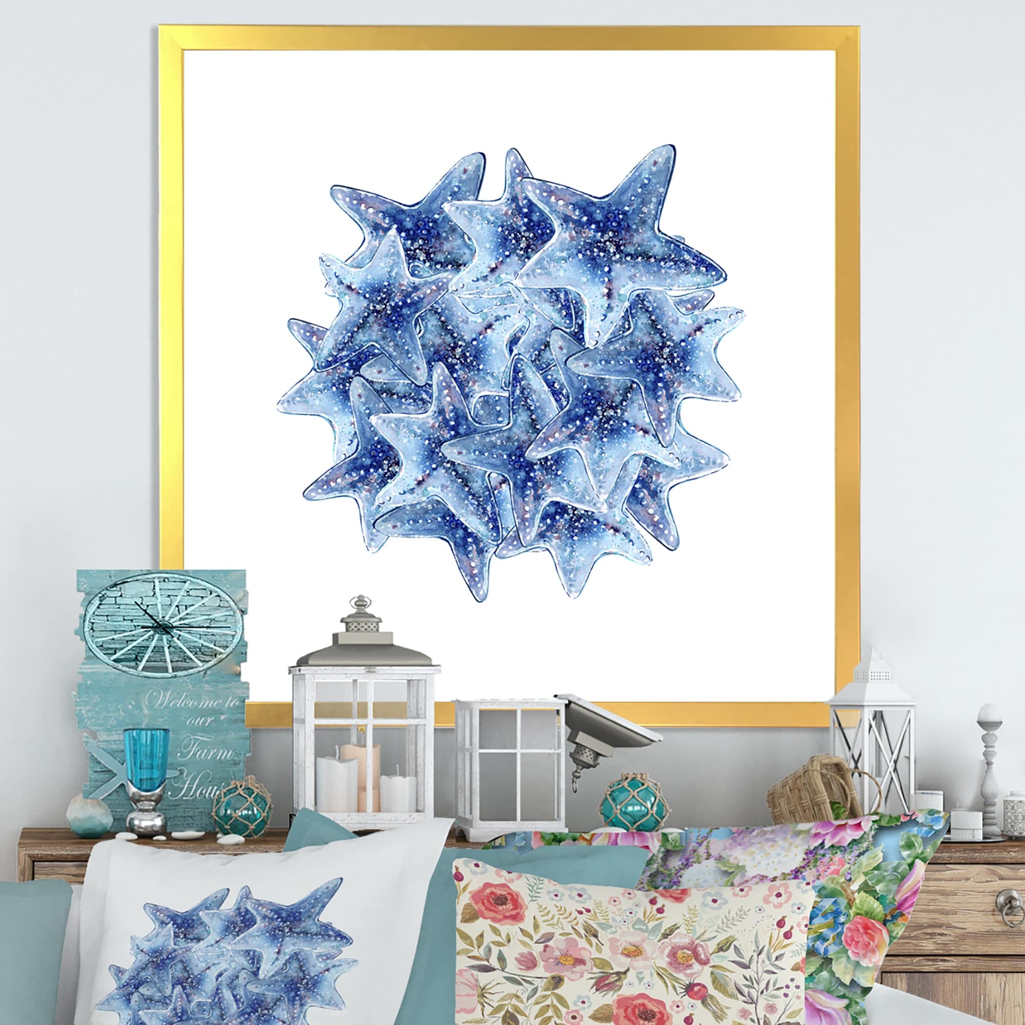 Designart "Sea Star Coastal Composition" Traditional Framed Children's artwork