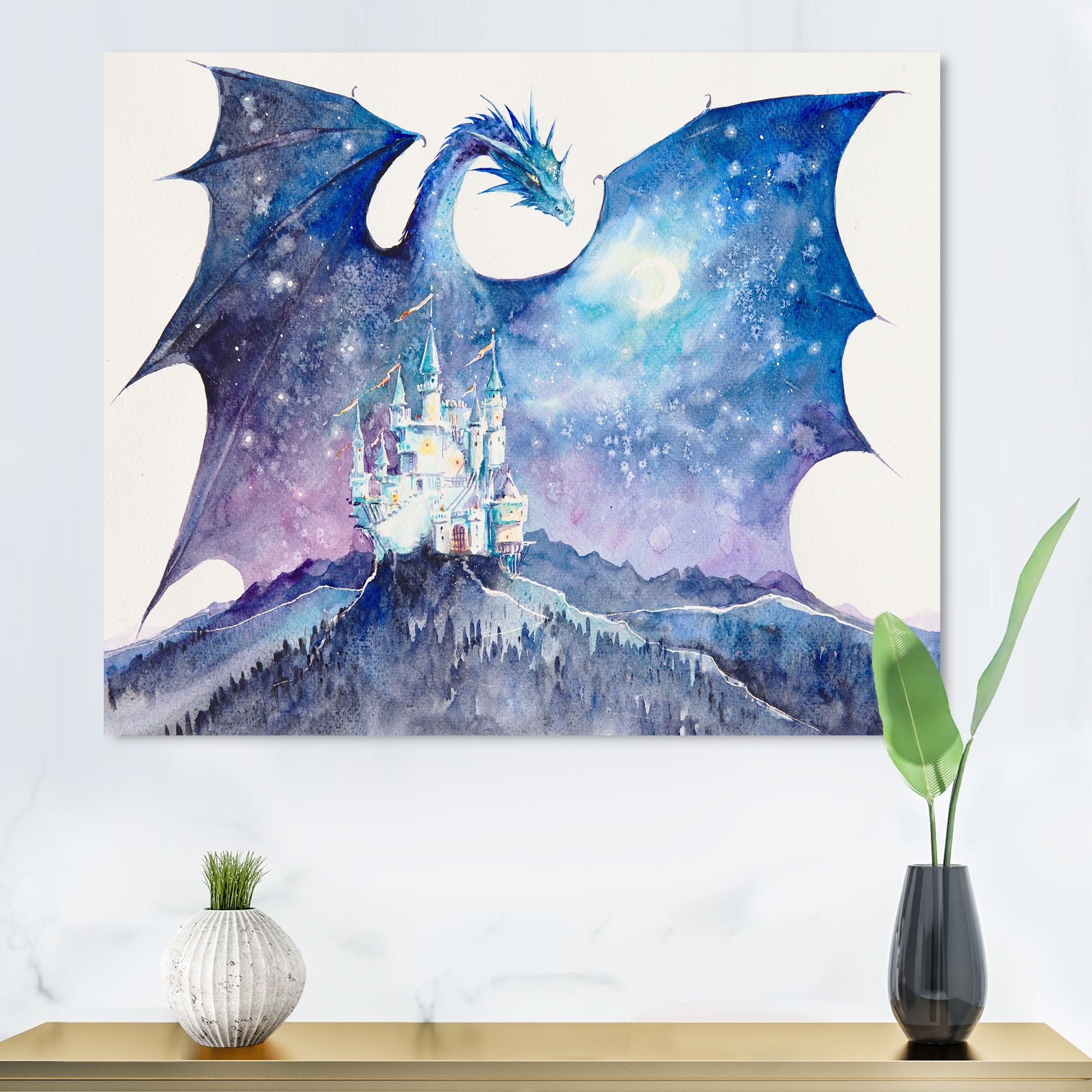 Designart "Dragon Castle Guard Castle" Children's Art Canvas Art Print
