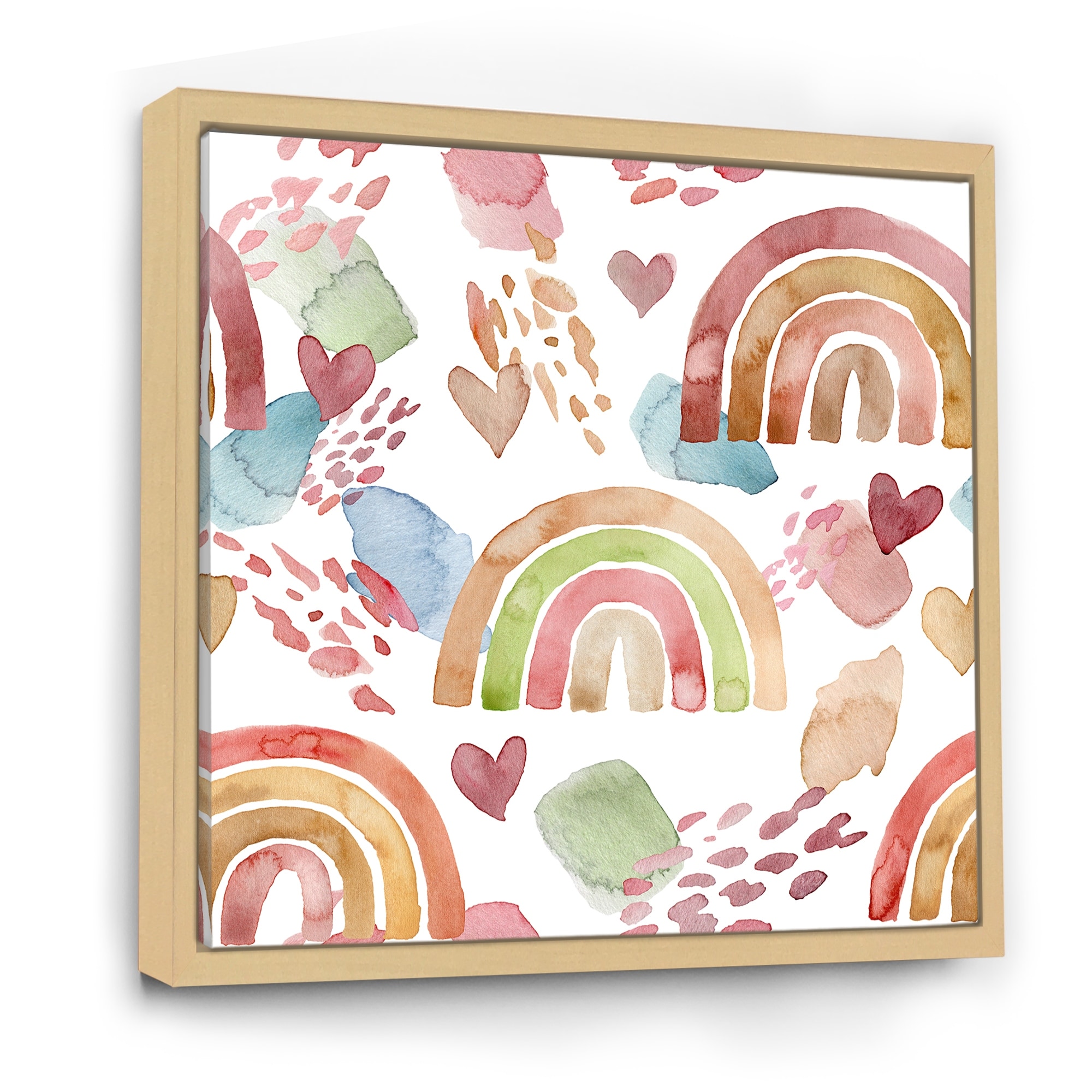 Designart "Multicolored Rainbows Clouds and Hearts" Children's Art Framed Canvas Wall Art Print