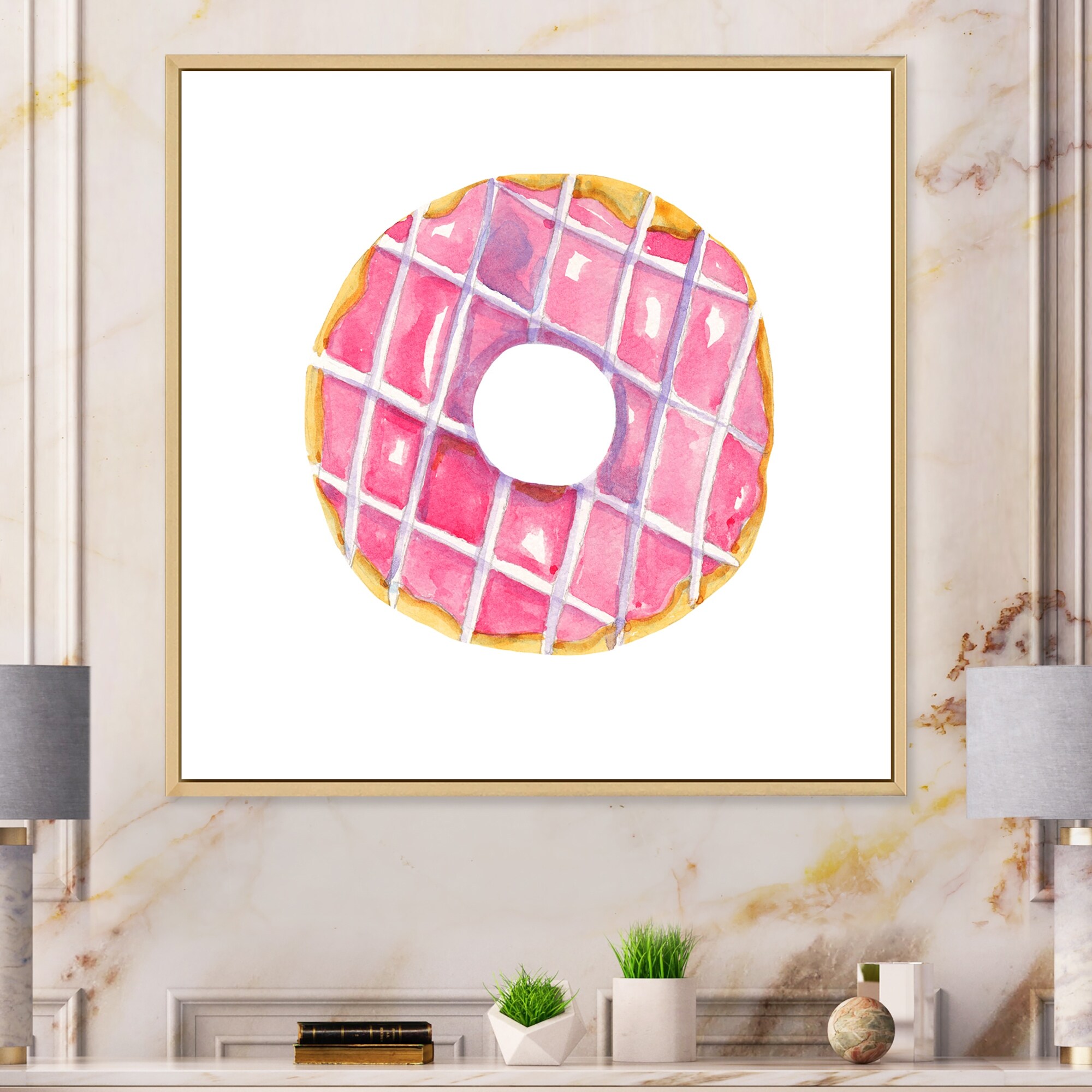 Designart "Vintage Pink Donut" Children's Art Framed Canvas Wall Decor