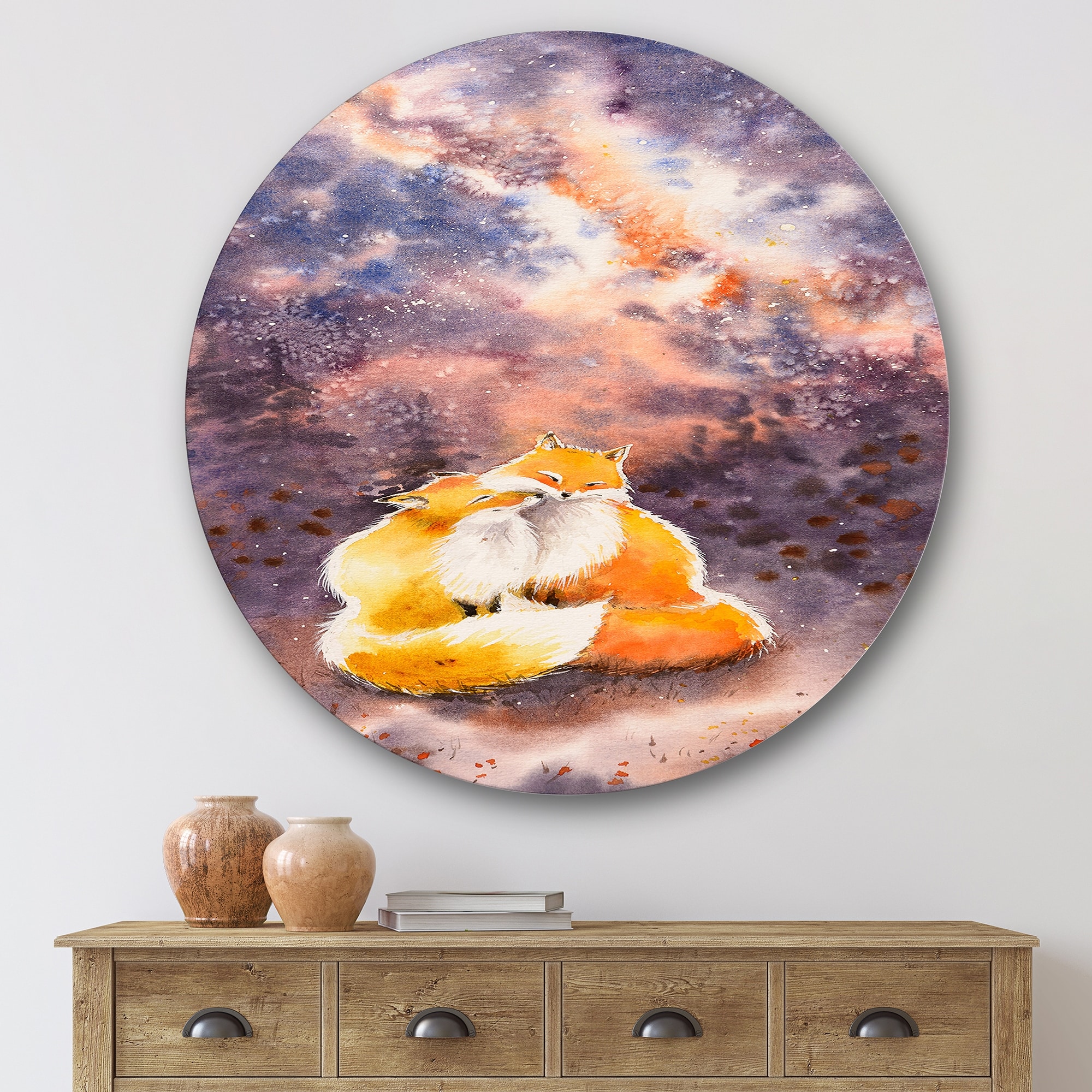 Designart 'Hugging Foxes Over A Night Sky' Children's Art Metal Circle Wall Art