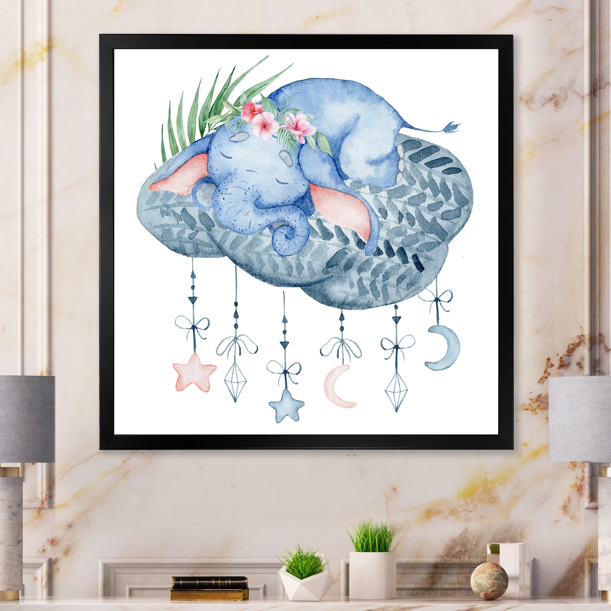 Designart "Cute Elephant Sleeping" Children's Art Framed artwork