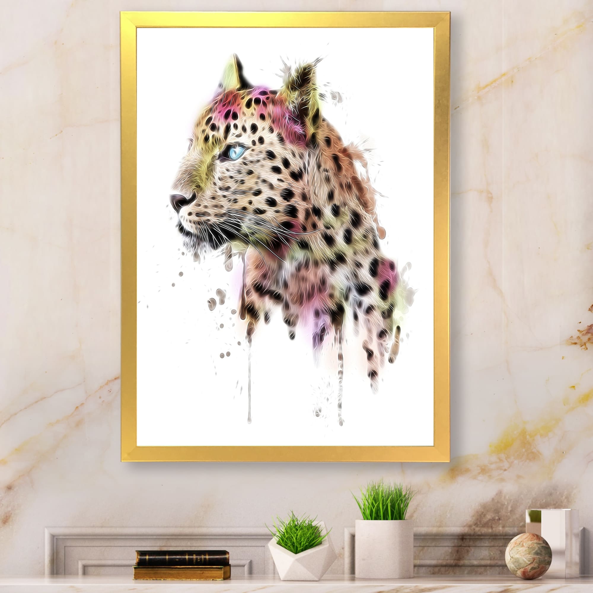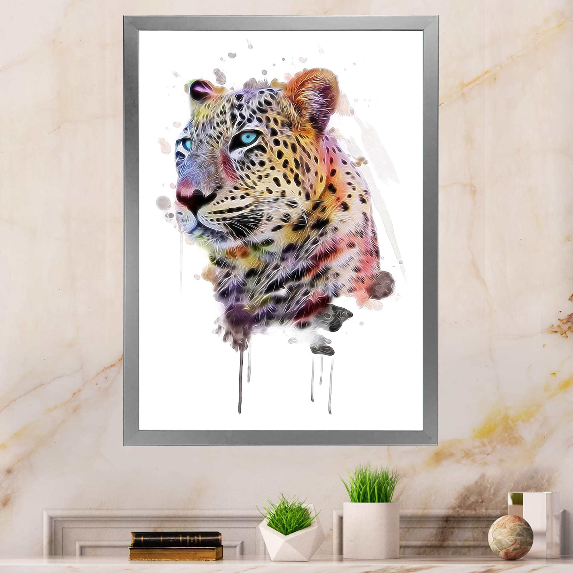 Designart "Colorful Colorful Leopard Portrait II" Children's Art Framed Wall Decor