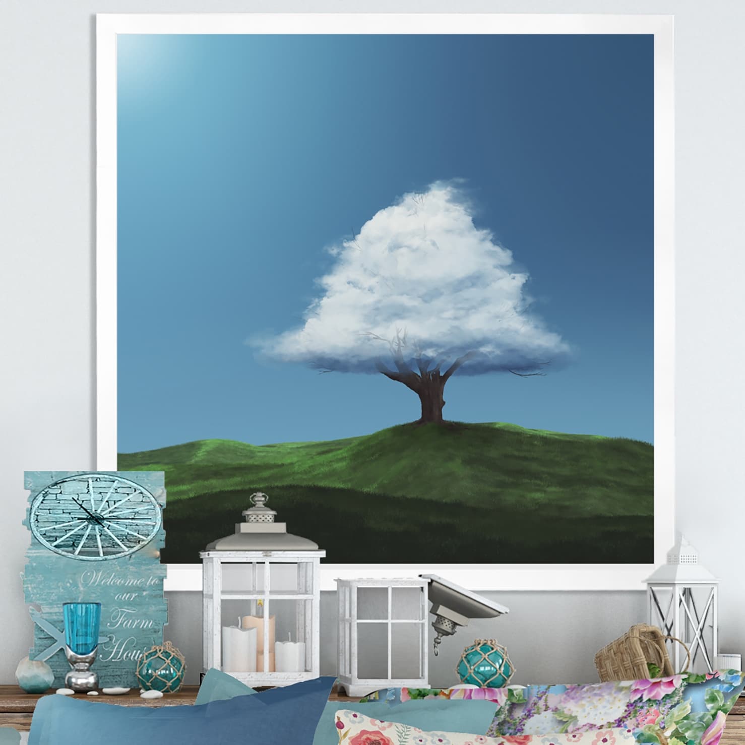 Designart "Winter Cloud on A Tree" Traditional Framed Children's Wall Art