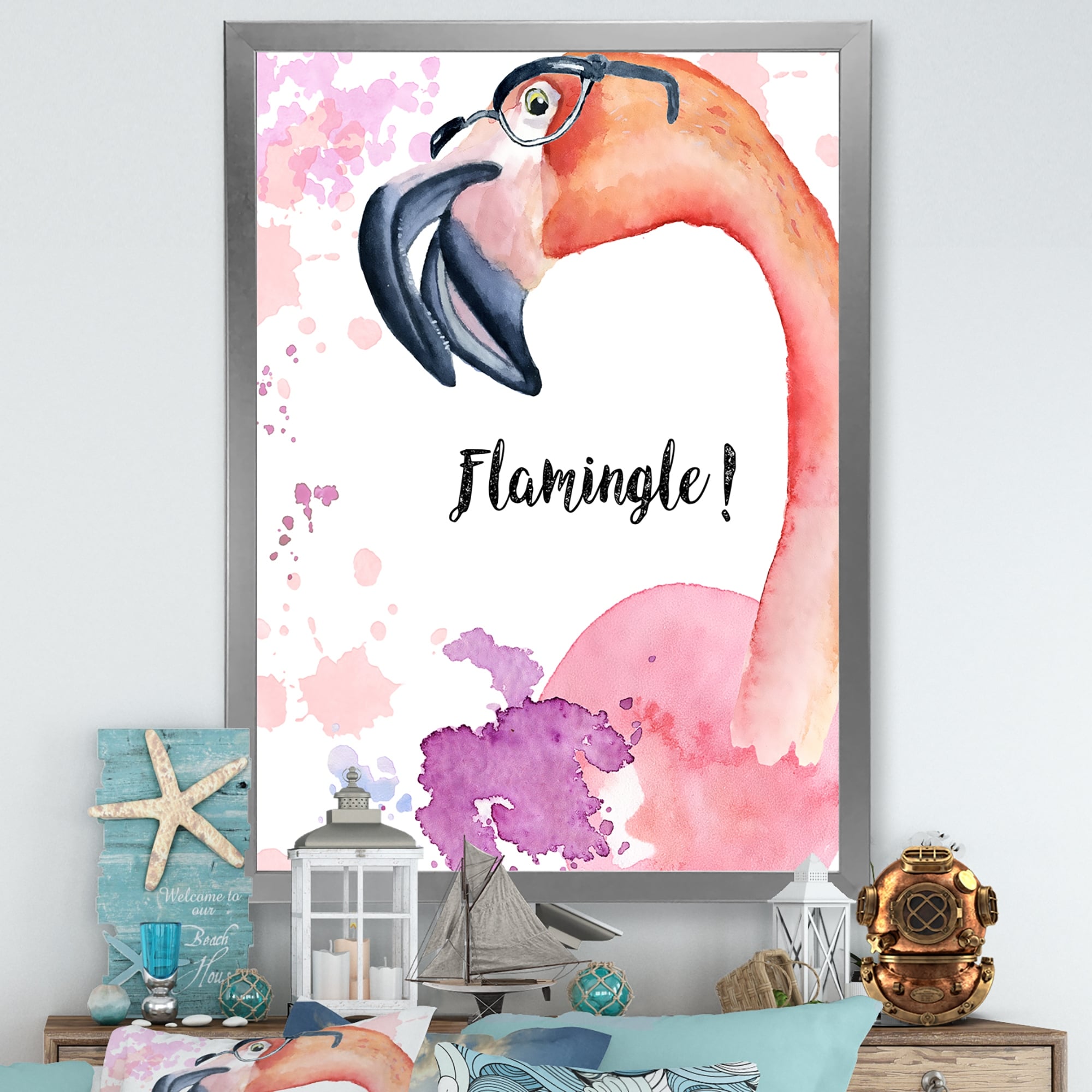 Designart "Portrait Of Pink Flamingo III" Tropical Framed Children's Art Print