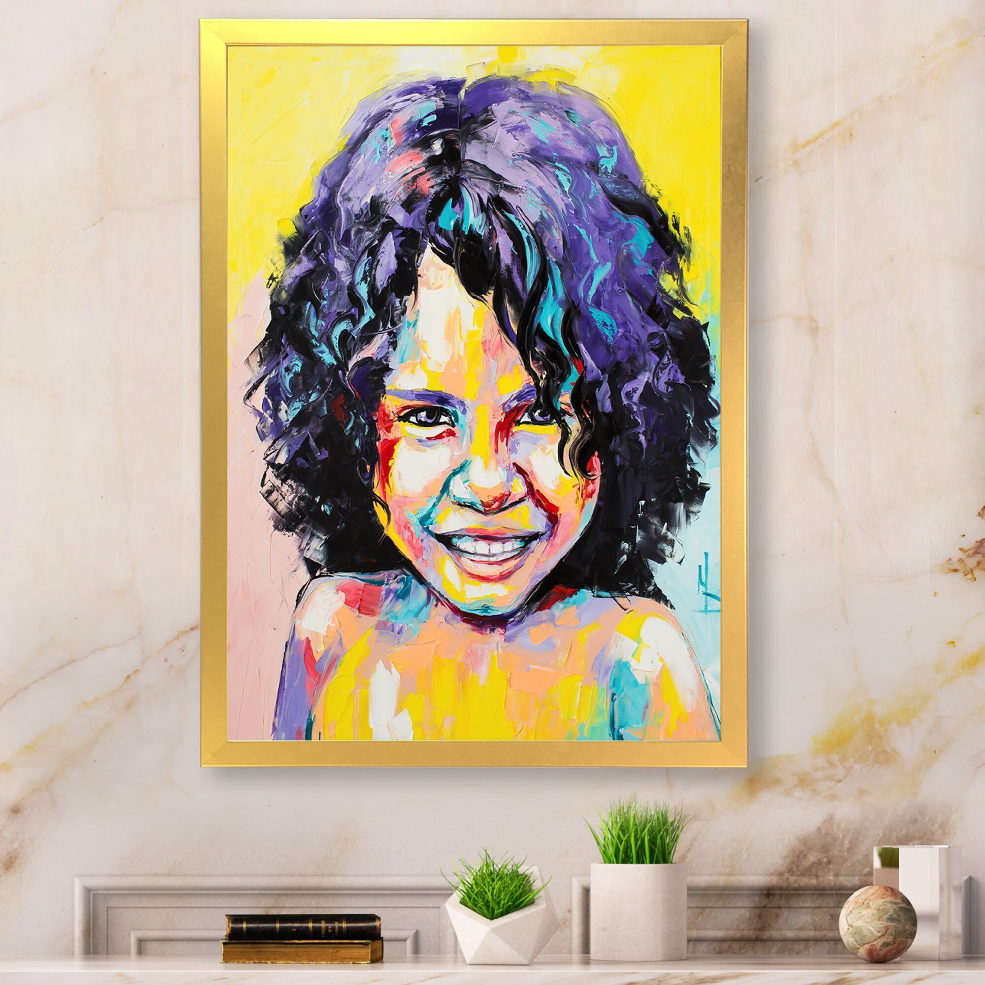 Designart "Cute Kid Portrait on Stroke Paint" Children's Art Framed Wall Art