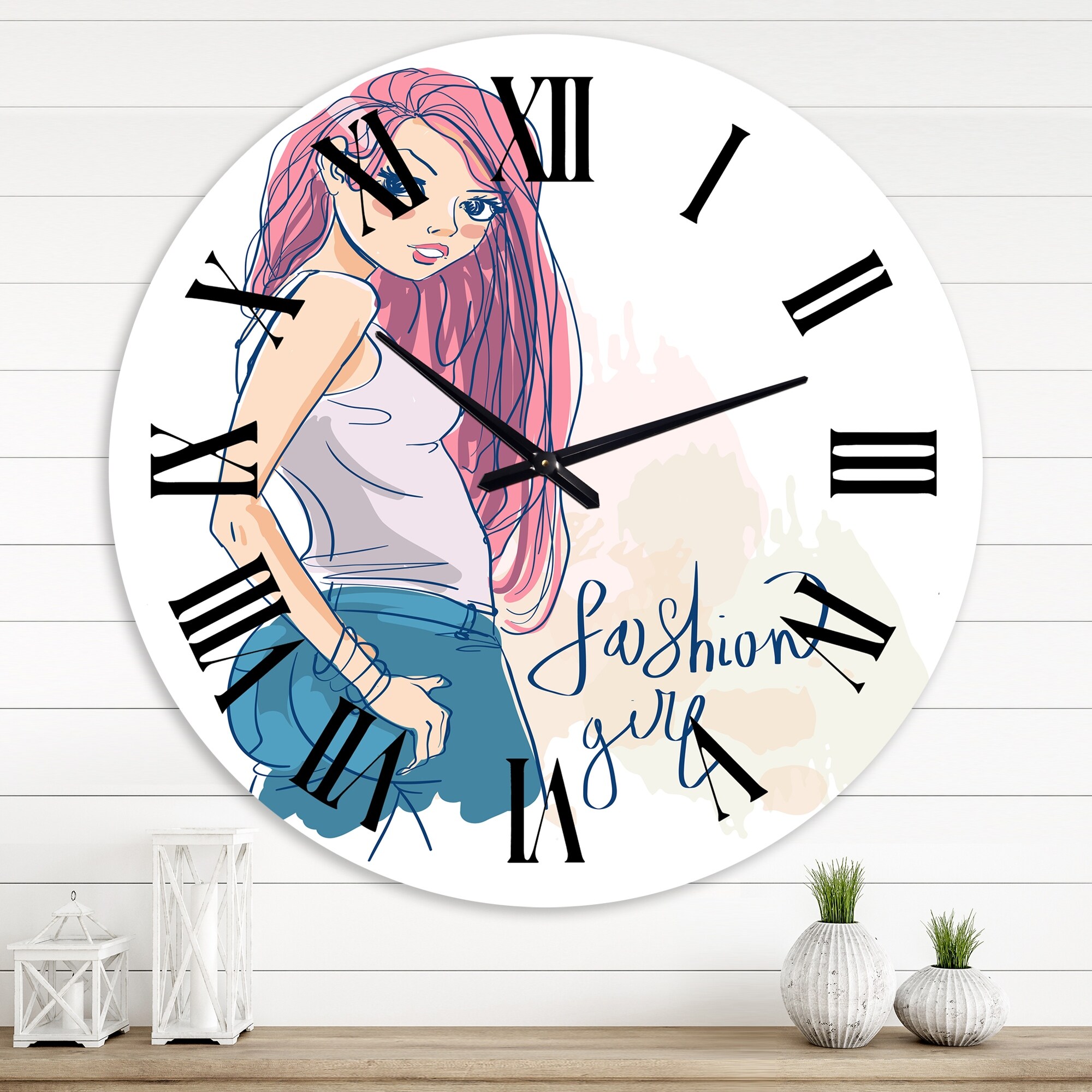 Designart 'Trendy Fashion Girl I' Children's Art wall clock