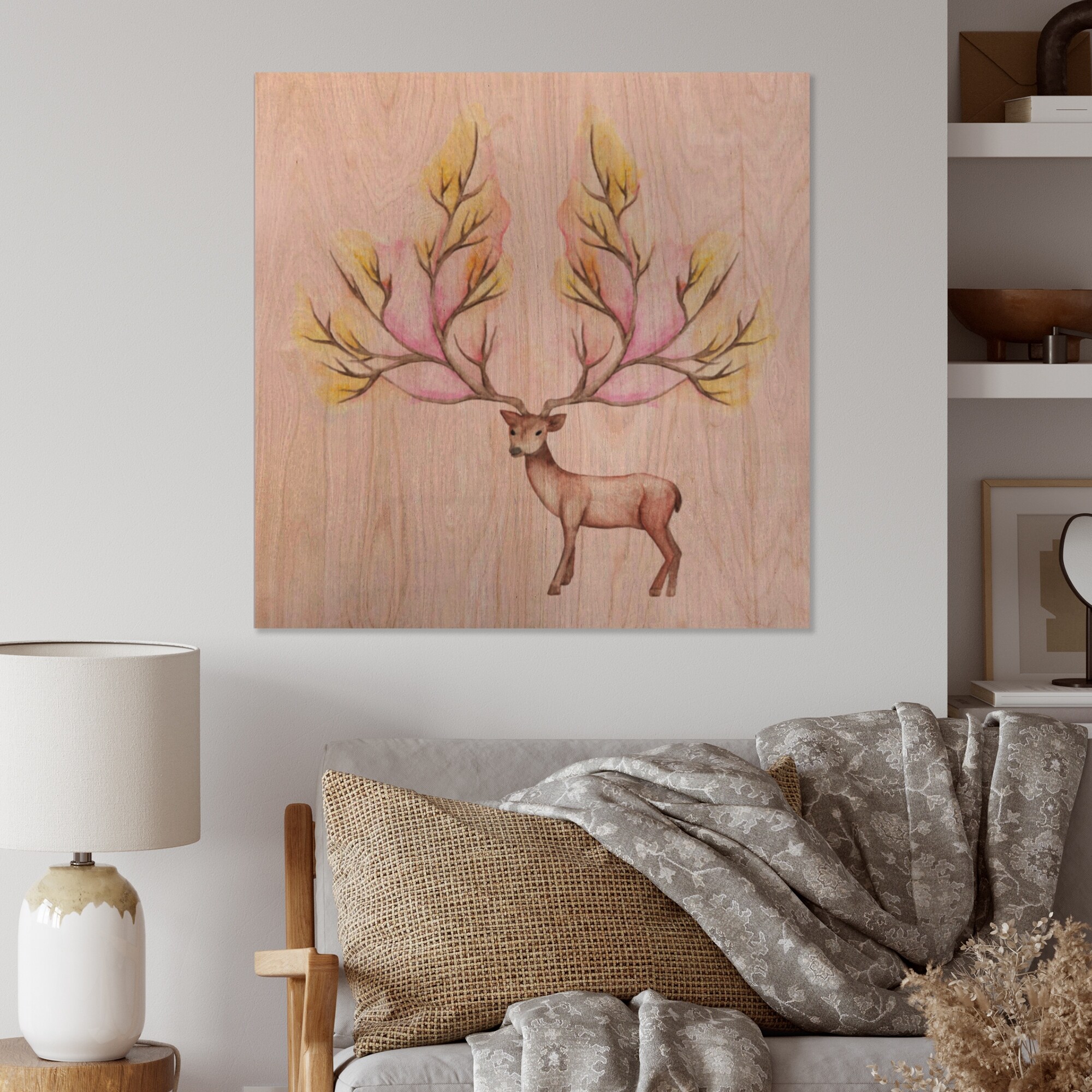 Designart 'Deer Winter' Children's Art Wood Wall Art Panels - Natural Pine Wood